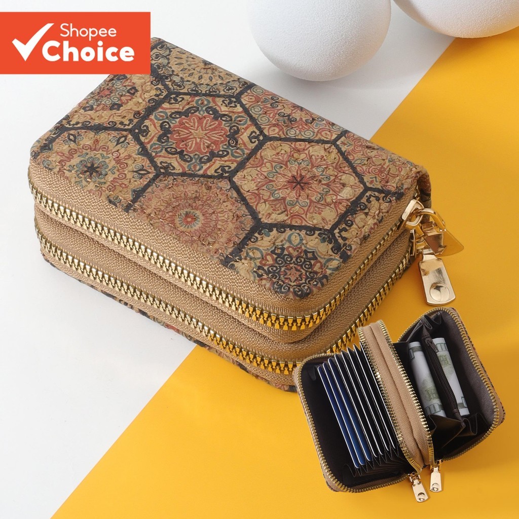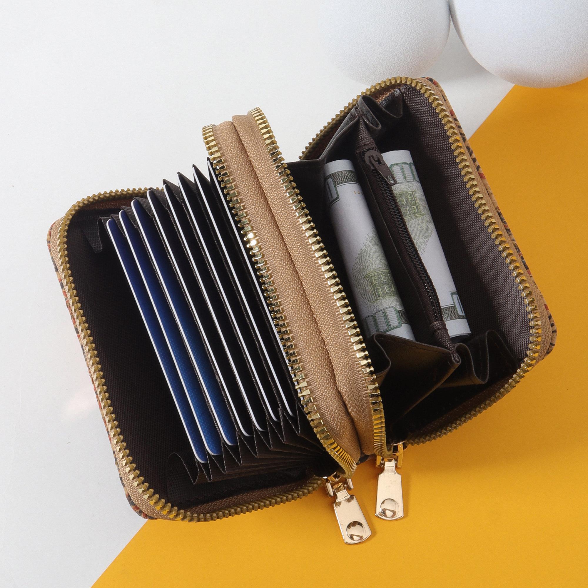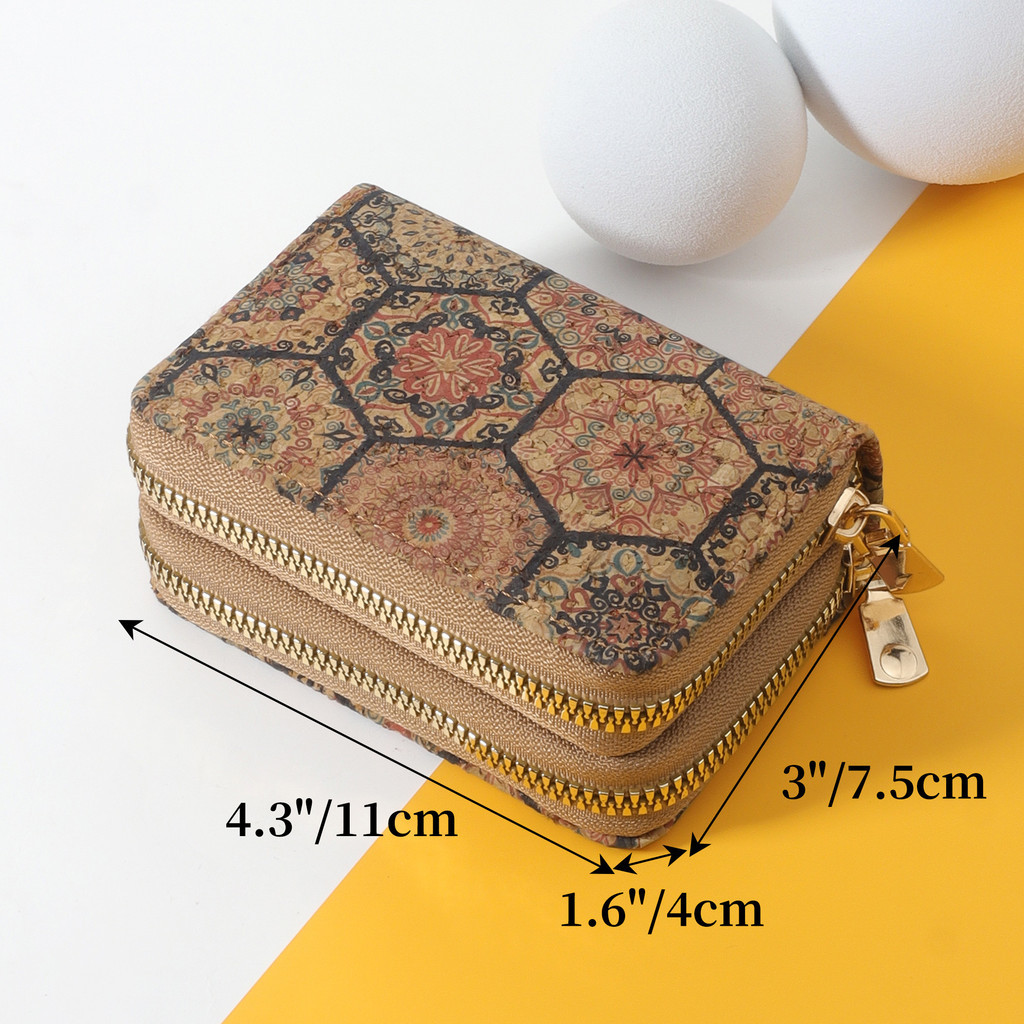 Vintage PU Card Holder - Printed Multi-Slot Wallet - Zippered Coin Purse with RFID Protection