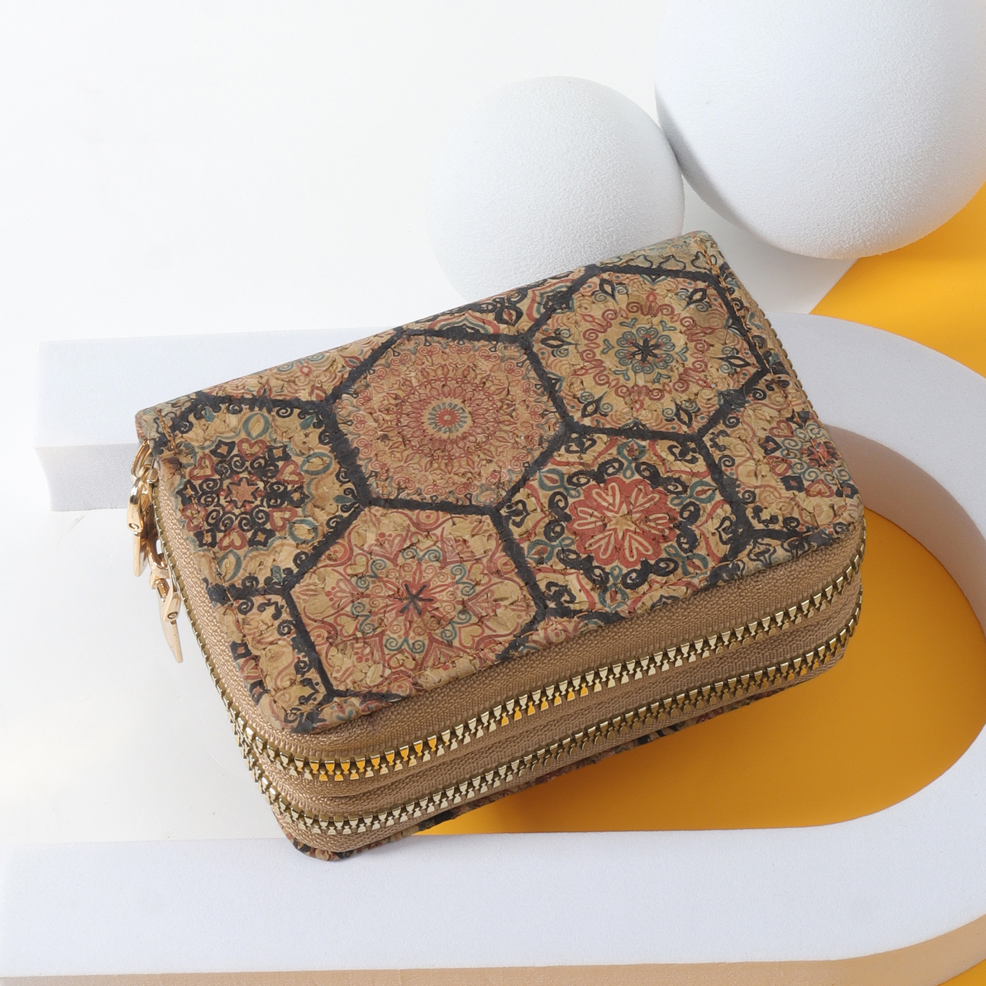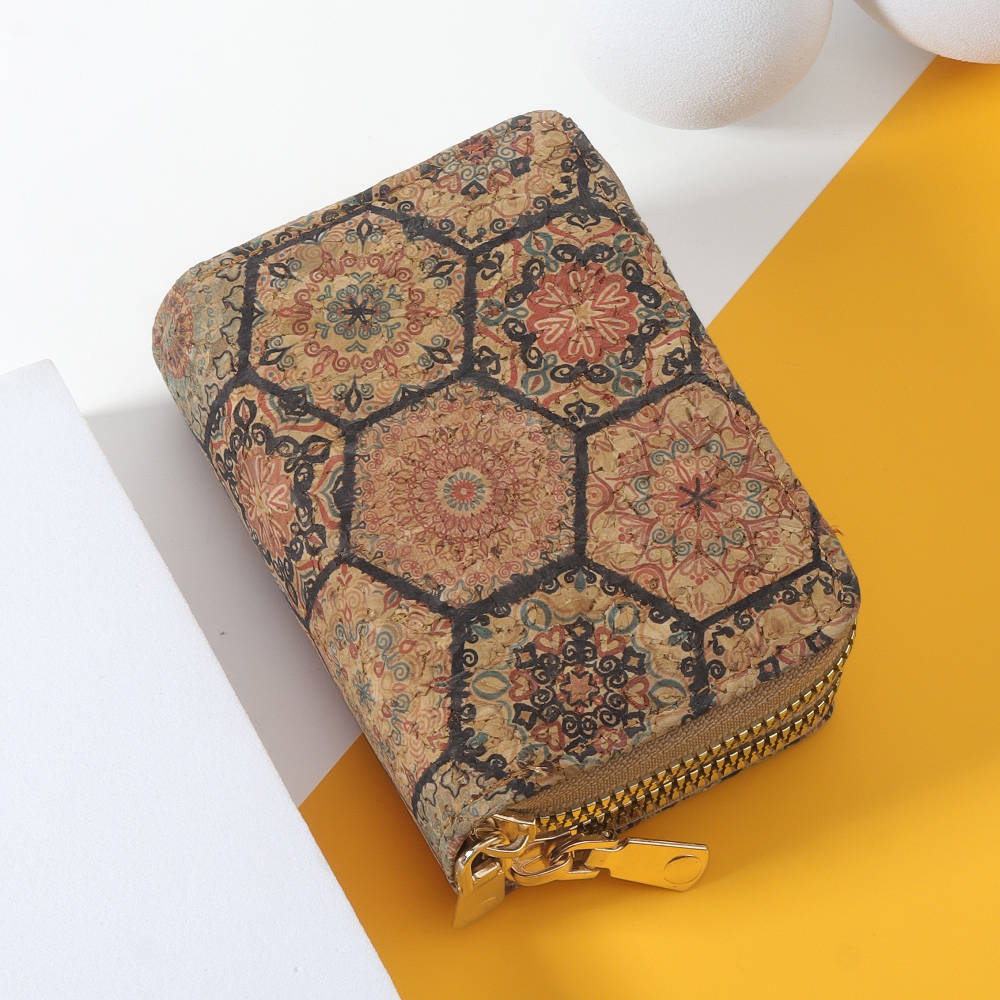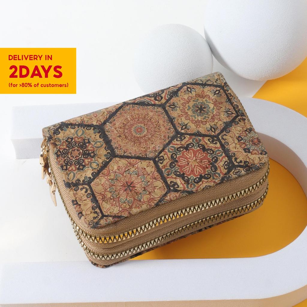 Vintage PU Card Holder - Printed Multi-Slot Wallet - Zippered Coin Purse with RFID Protection