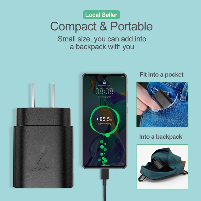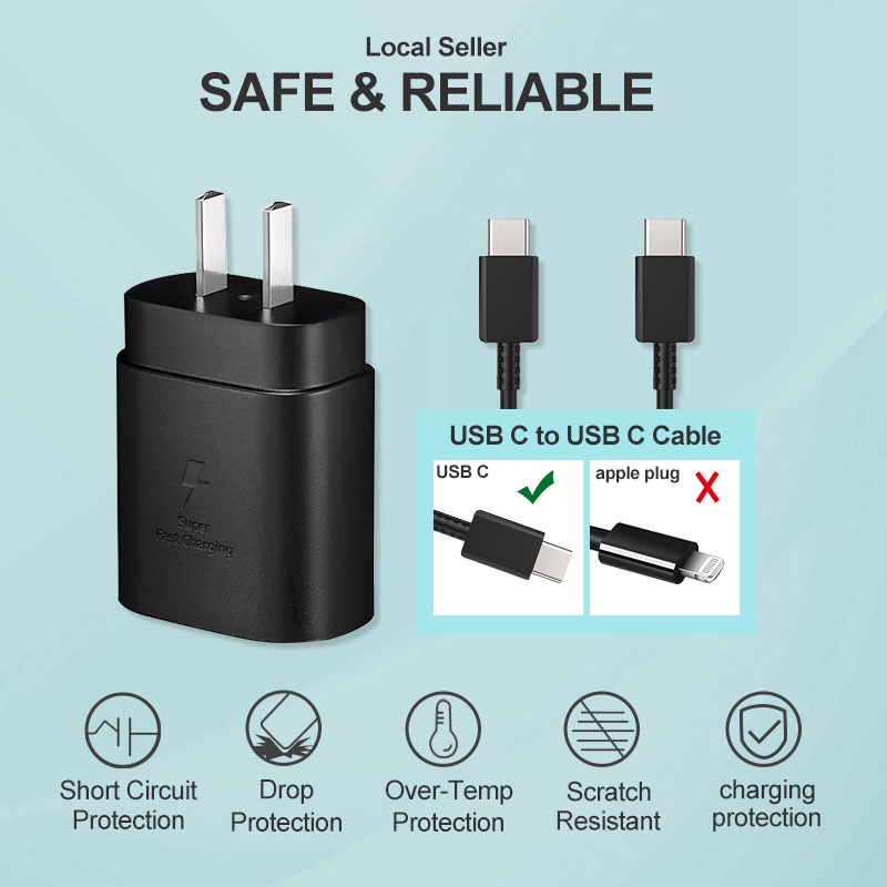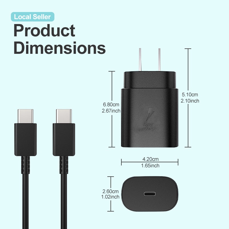 Fast Charger 25W Set 1m 2m Charging Cord Type C to USB C Cord