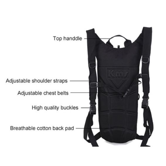 Fast Shipping Quality Hydro Bag Black Knapsack Hydration Water Backpack 2.5L Bladder #0191