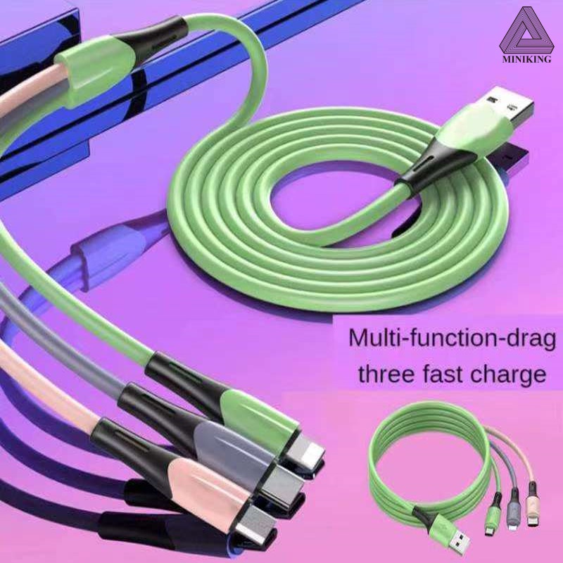 Fast charger Cable 3 in 1 Charger IP Micro Usb / Type-C 5V/3A Fast Charging Soft liquid silicon