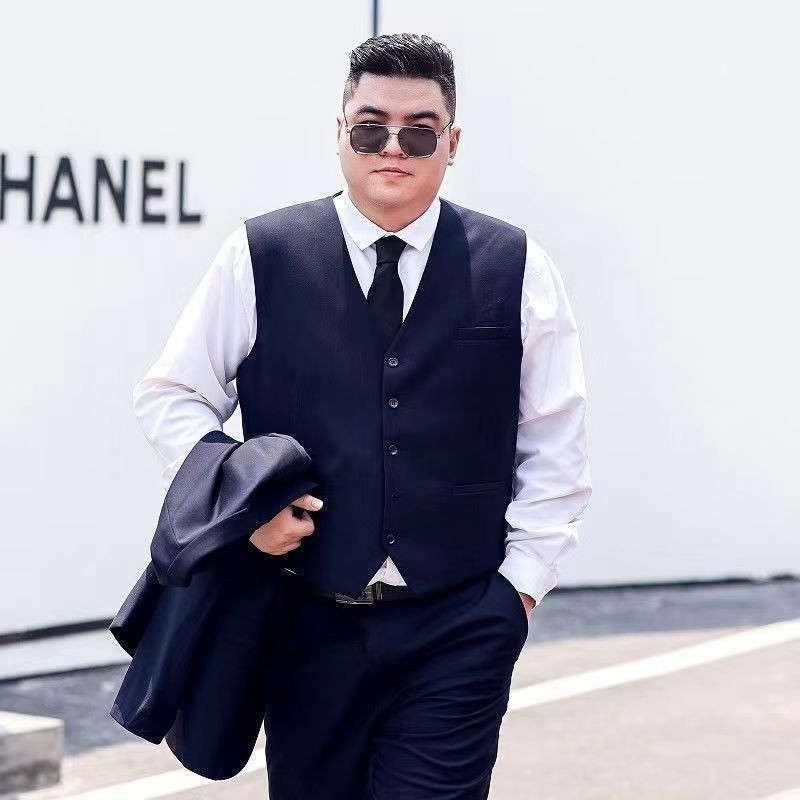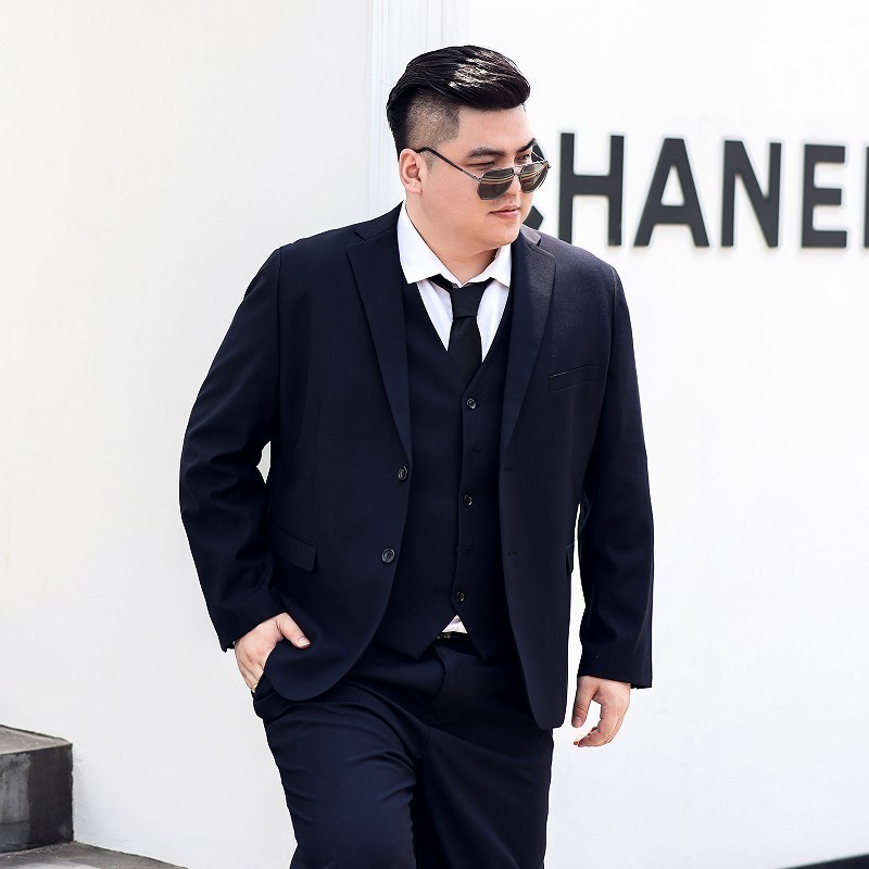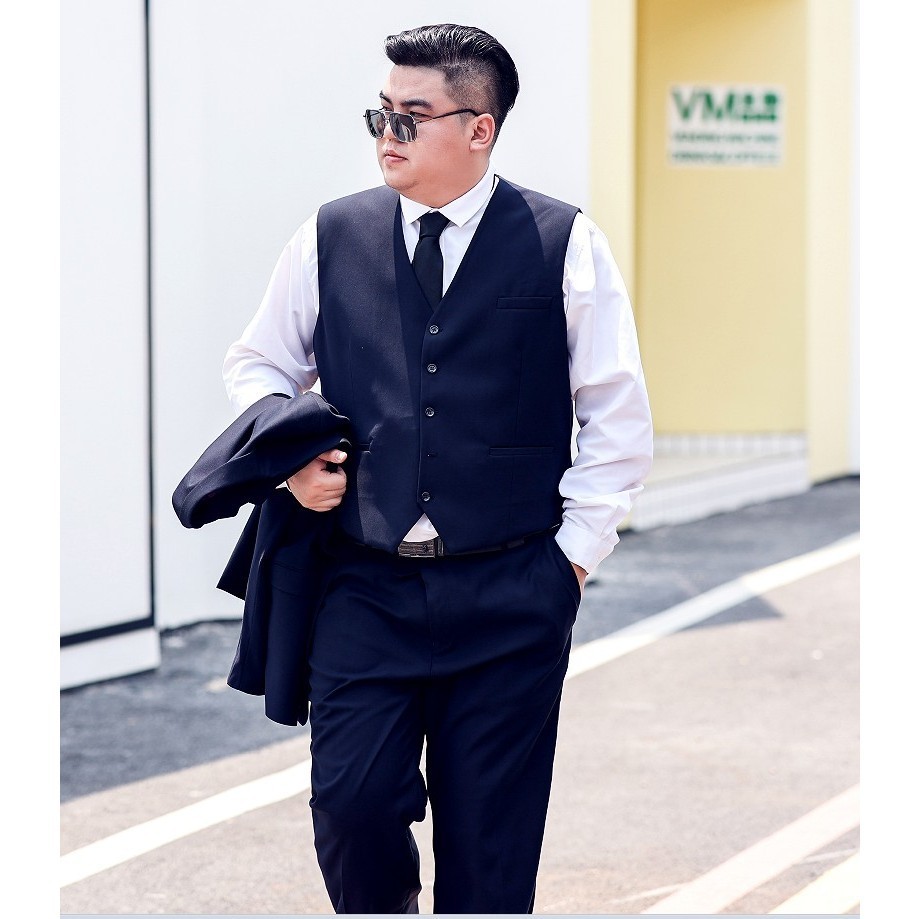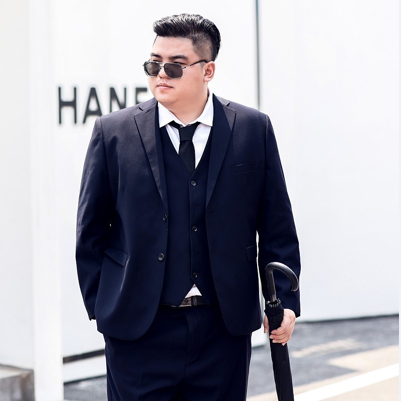 Fat Men Navy Blue Oversize Business Formal Suit Jacket Work Pant Sets Professional Blazer Long Sleeve Shirt Vest Plus Size Loose Thin Suits