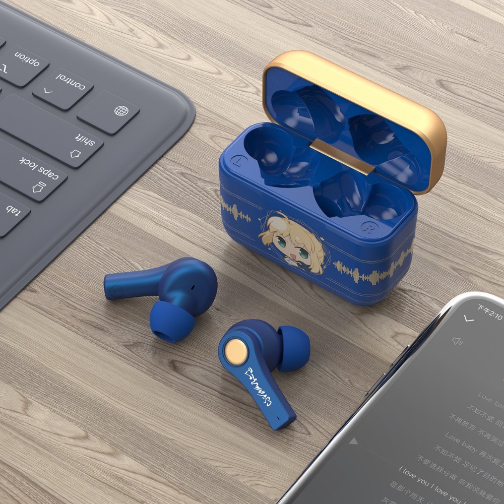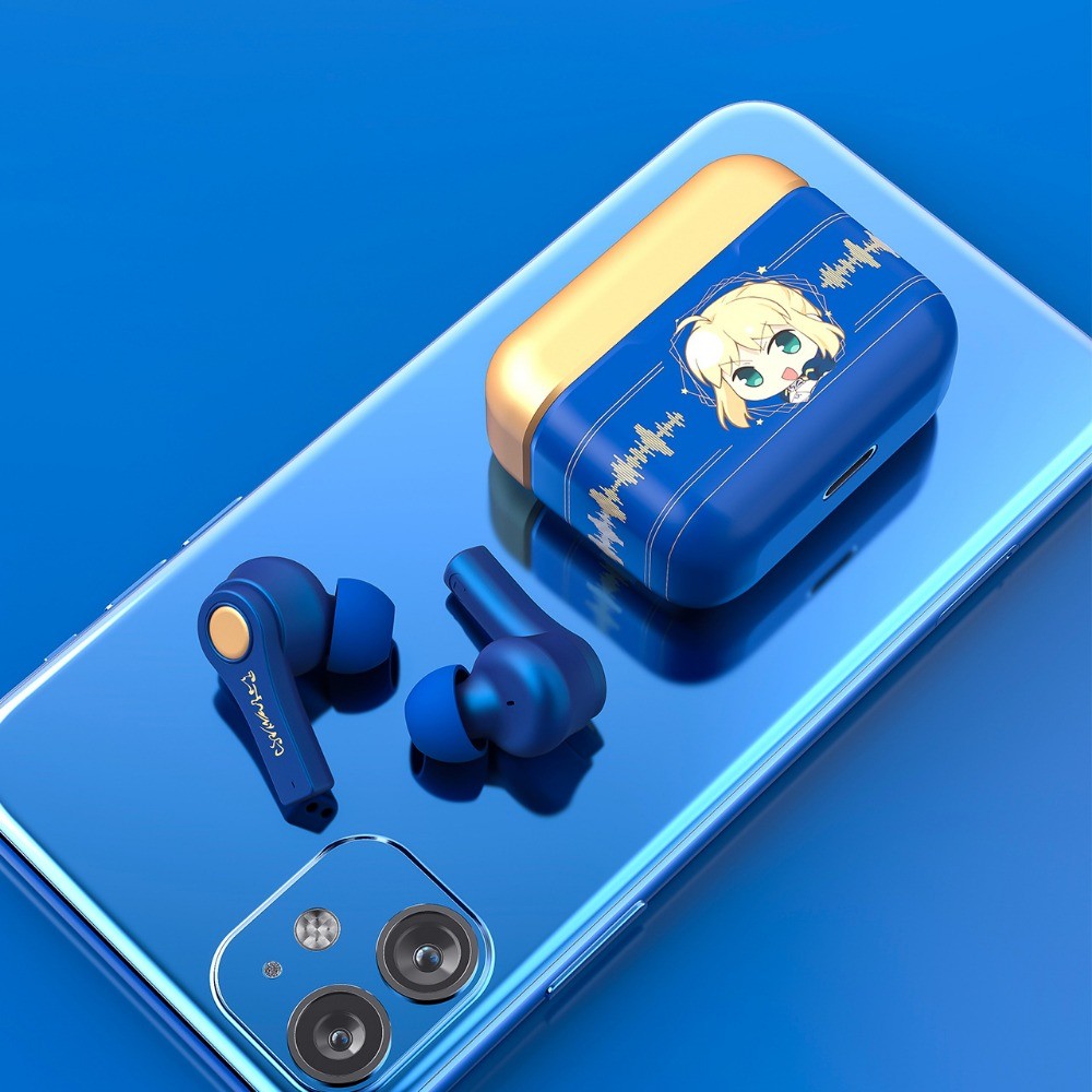Fate Stay Night Saber Wireless Bluetooth Earphones Low Latency Noise Cancelling HiFi Sound Quality Cool Altria Pendragon Anime Earpieces
