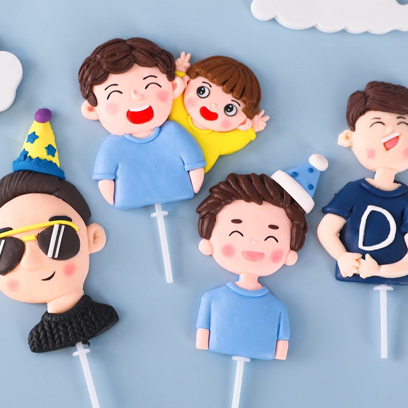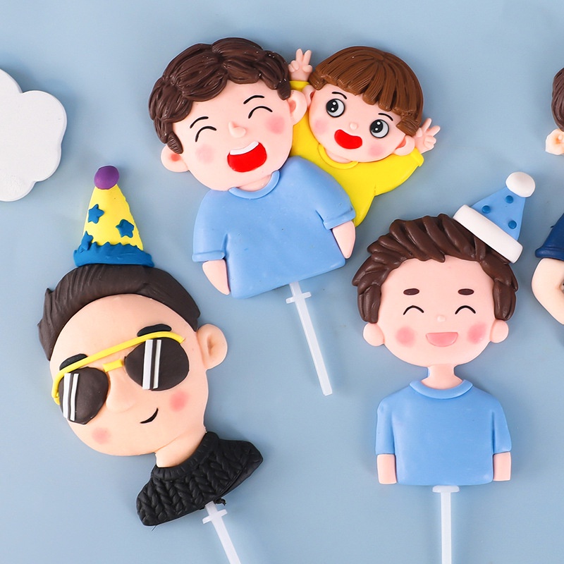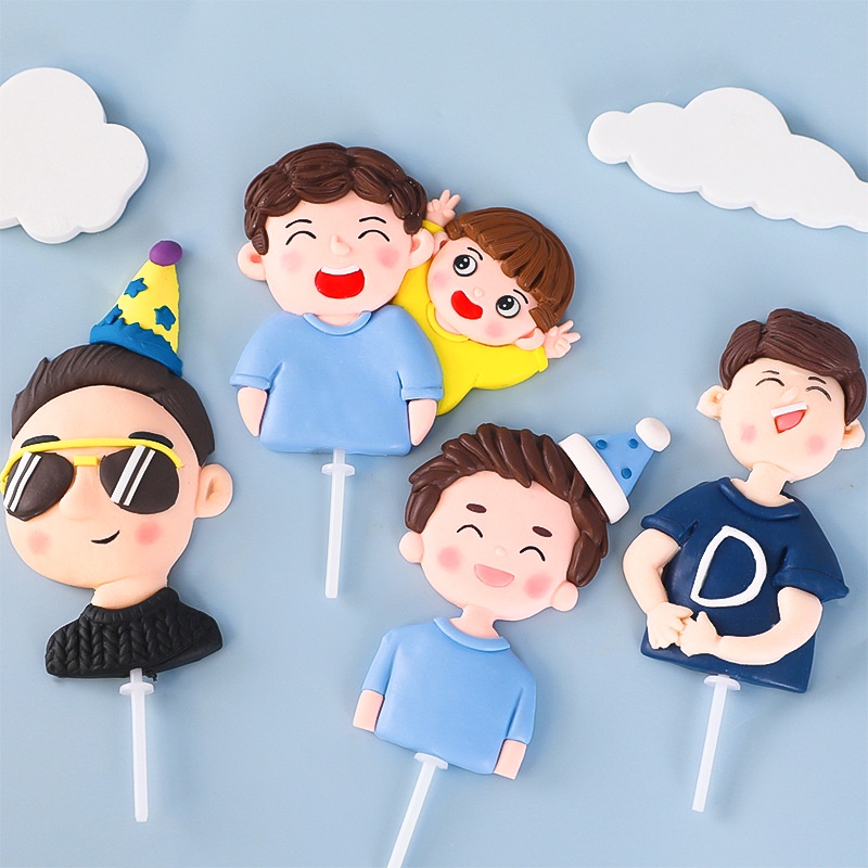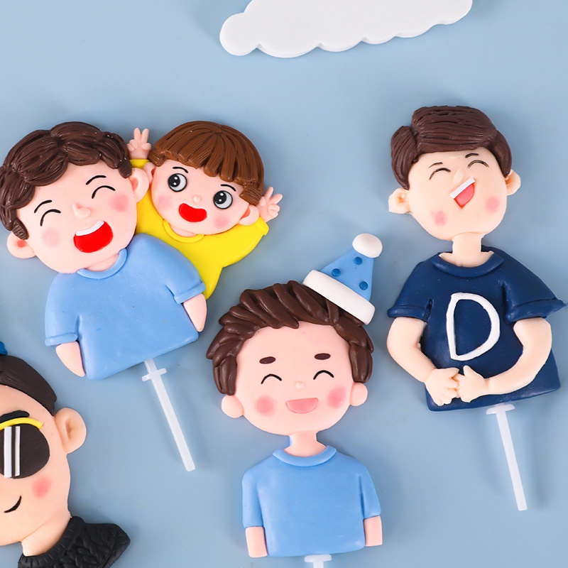 Fathers Day Dad's Birthday Cake Topper Decoration Father's Day Cake Decoration soft glue Cake Topper for Lovely Dad And Children Birthday Doll Party Decorations Baking Plug Insert