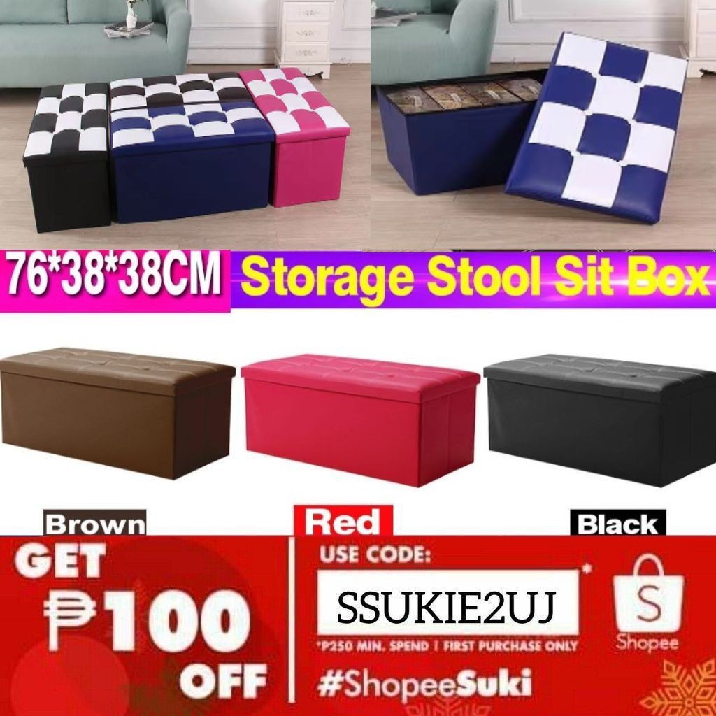 Faux Leather Folding Storage Sofa Cube Memory Foam Seat Foot Stools Box Laundry Storage Organizer