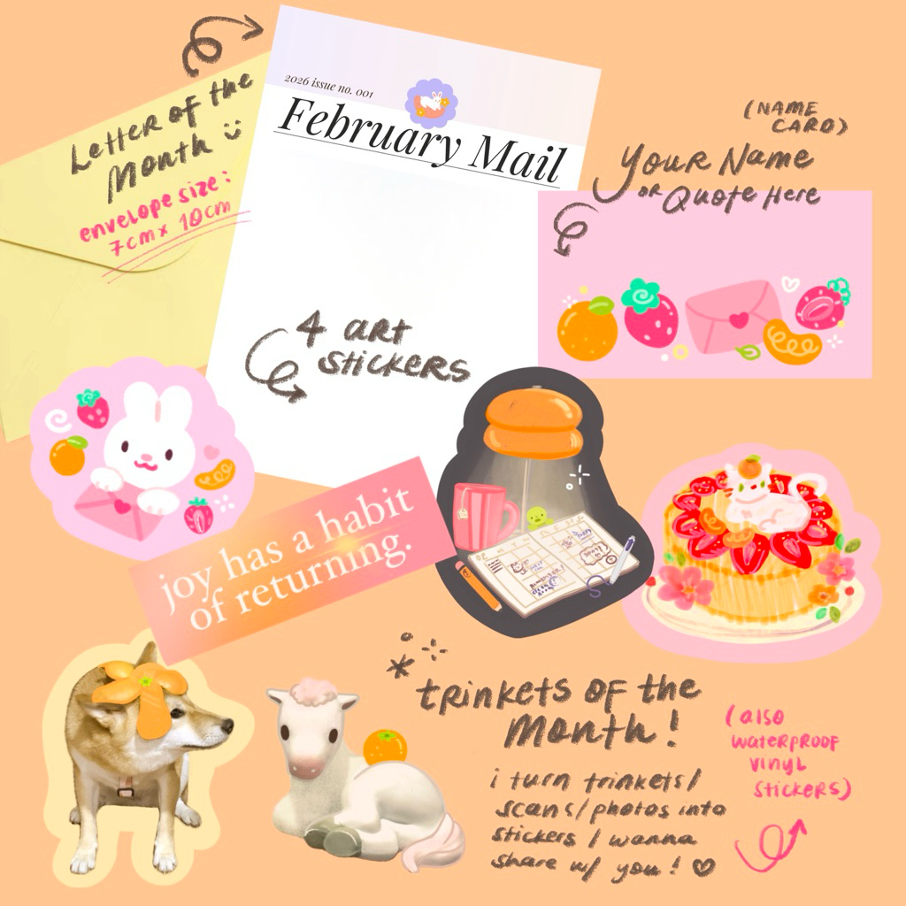 February 2026 Sticker Mail Club • Waterproof Vinyl • Strawberry Journal Theme | pomelo paints co.