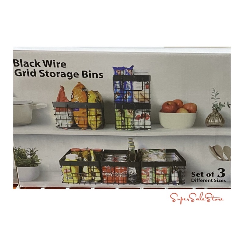 Felli Black Wire Grid Storage Bins, Stackable-3 Set