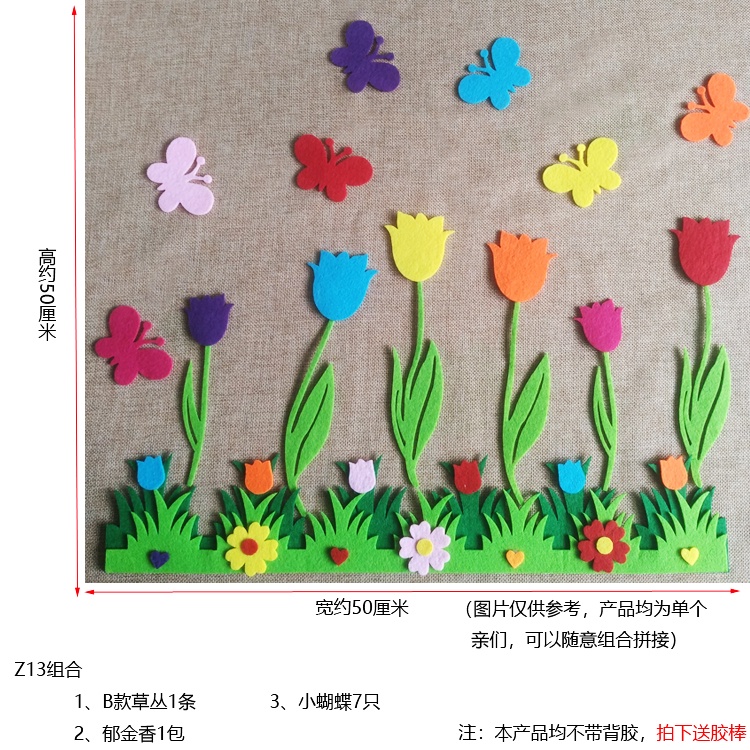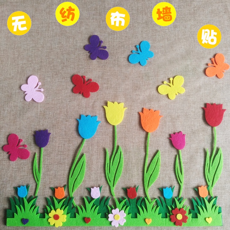 Felt Flowers Craft 3D classroom blackboard notice board Wall Decor Kindergarten Layout Home School Office infant room decorative wall stickers environment layout