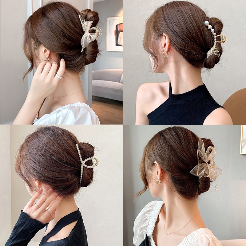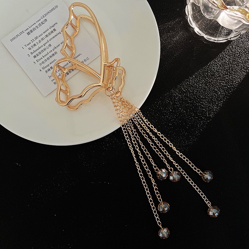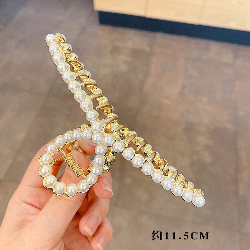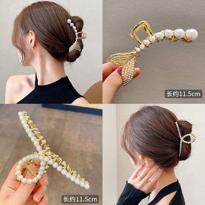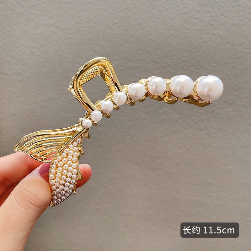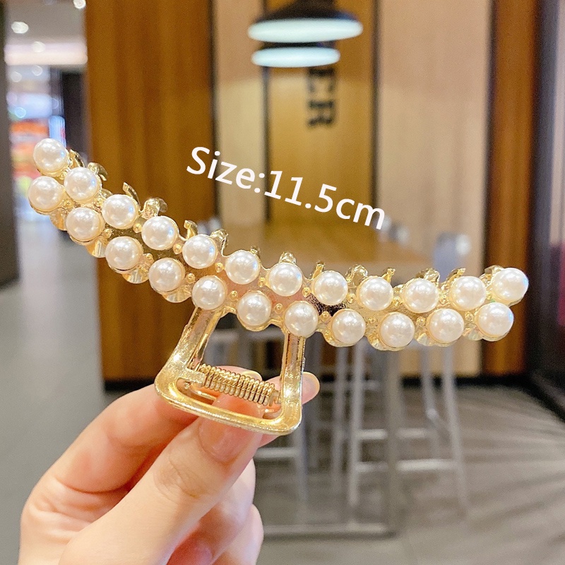 Female Long Tassel Hair Claw Clip Metal Hair Clamp Pearl Big Shark Hair Clip Durable Hair Accessory