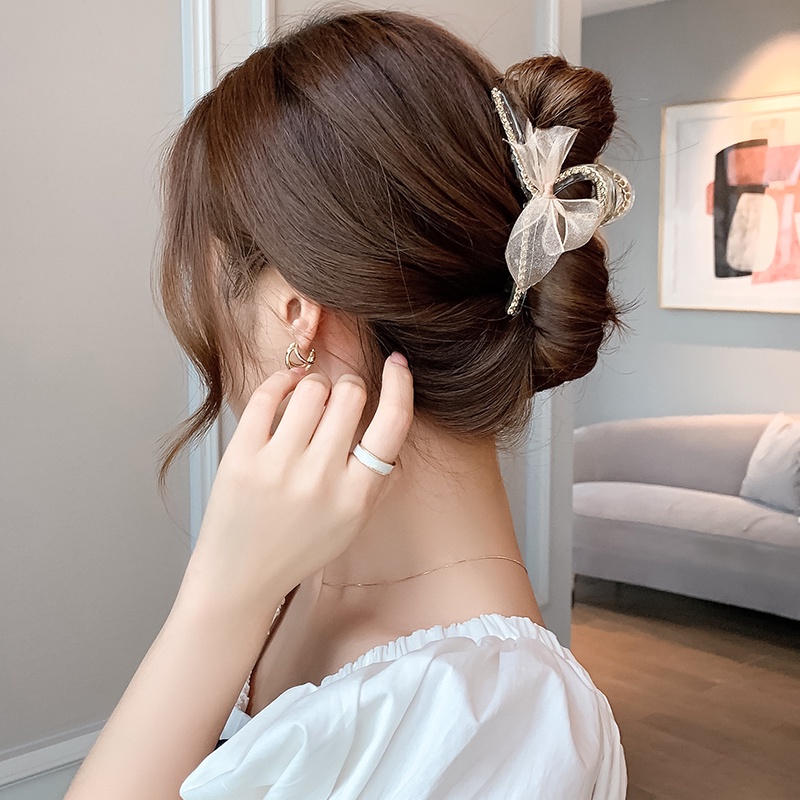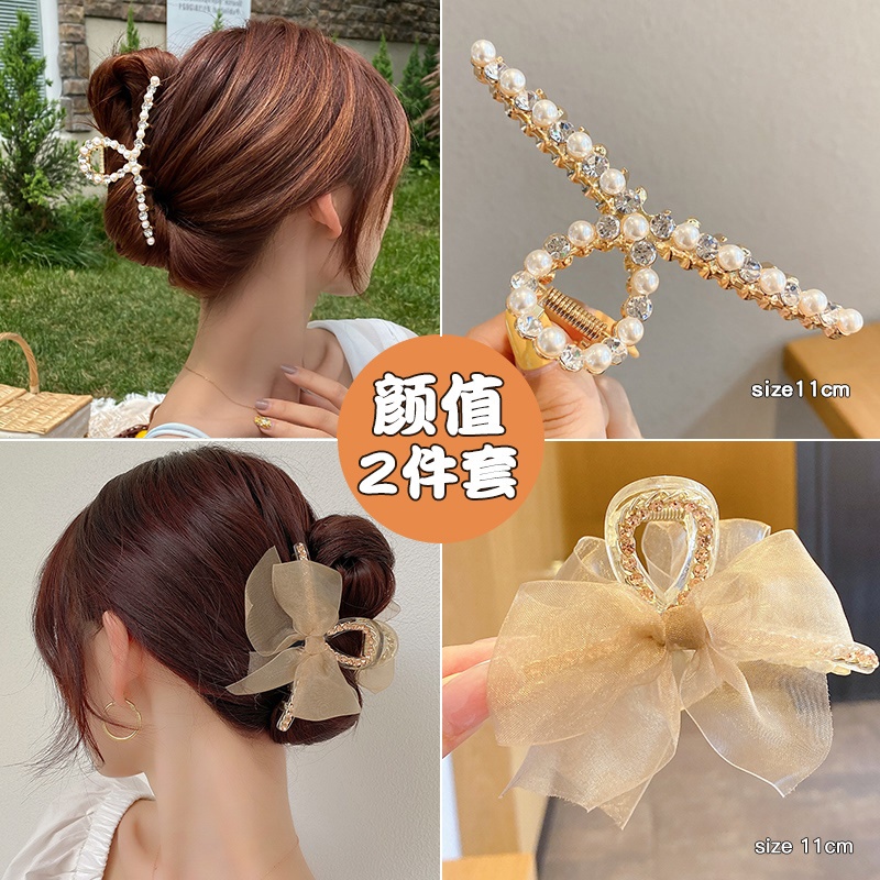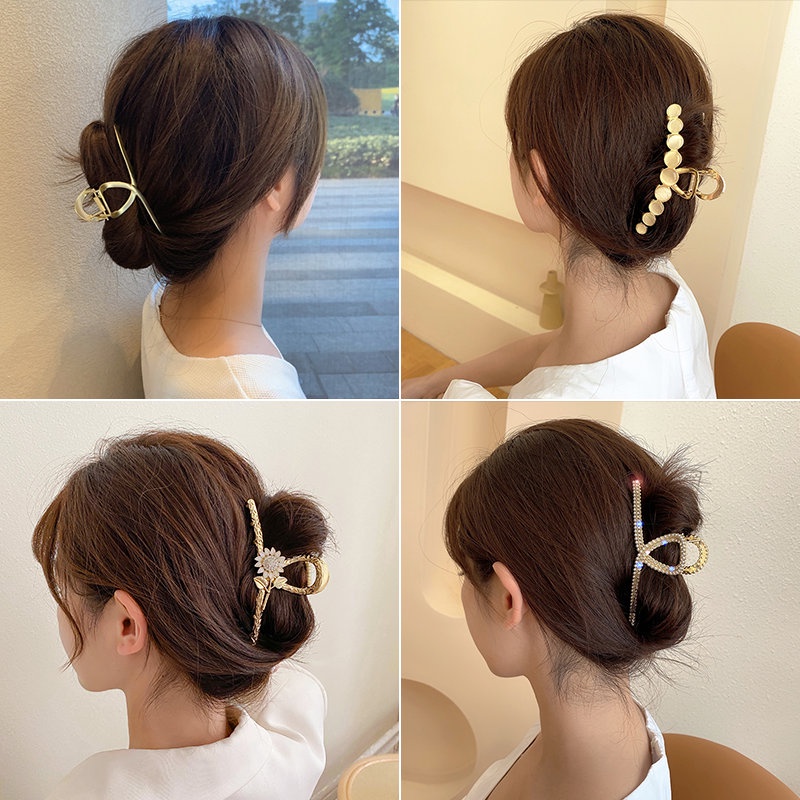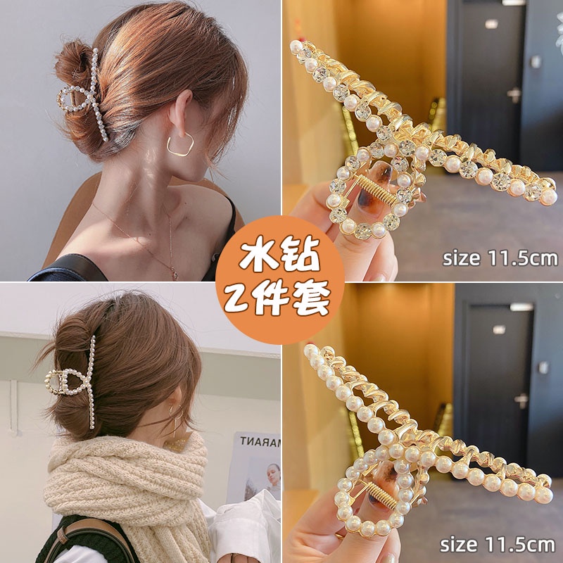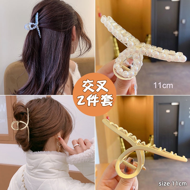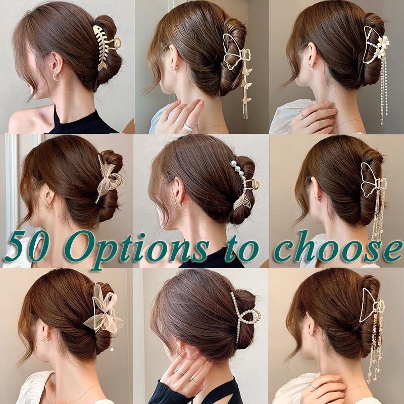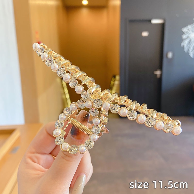 Female Long Tassel Hair Claw Clip Metal Hair Clamp Pearl Big Shark Hair Clip Durable Hair Accessory