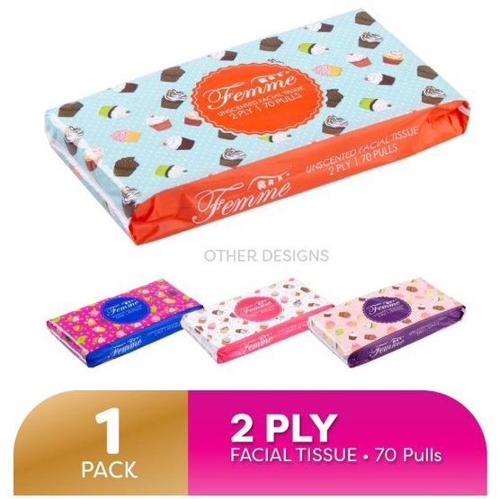 Femme Facial Tissue Travel Pack 2Ply 70 Pulls 140 Sheets