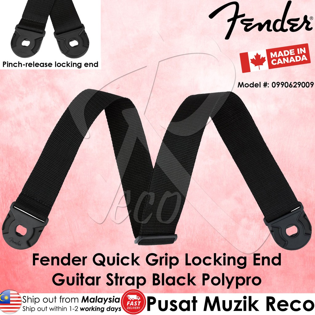 Fender Quick Grip Locking End Guitar Strap Quickgrip Guitar Strap with Lock Black Poly Tali Bahu Gitar Akustik Elektrik
