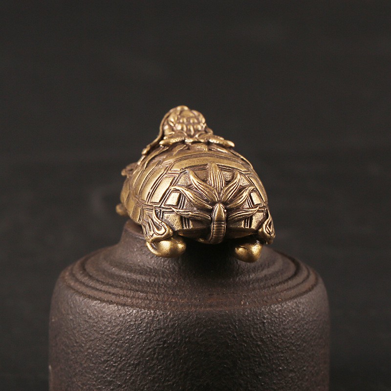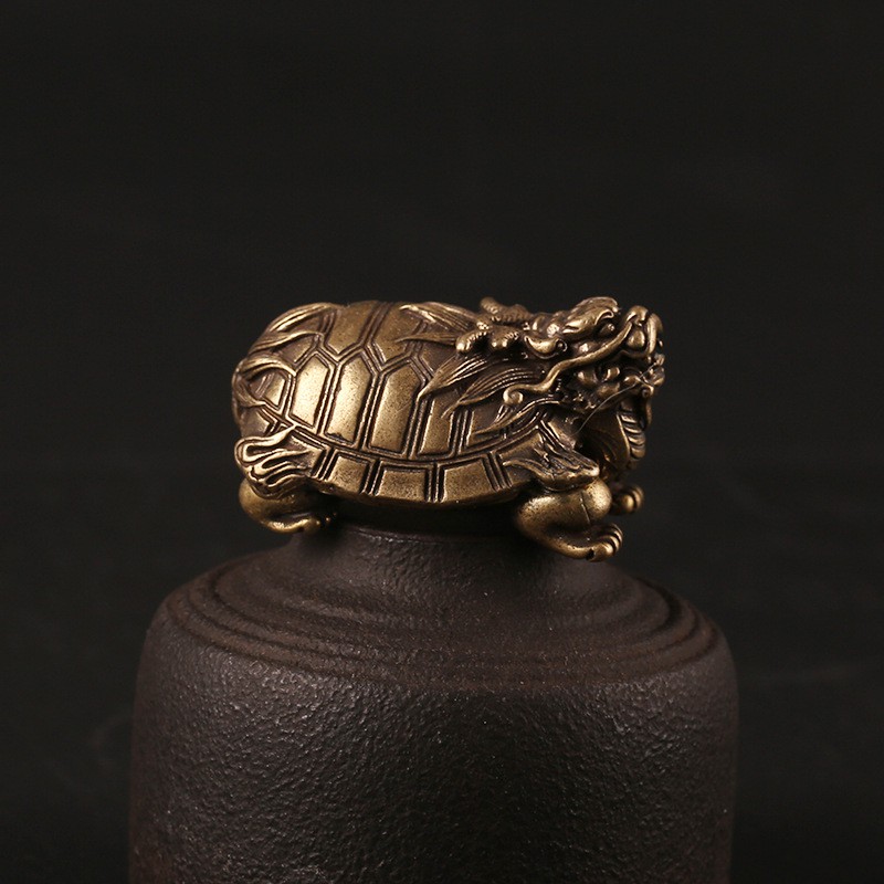 Feng Shui Display Statue, Bronze Decoration in the Shape of a Dragon-Headed Turtle (Size: 4.4 x 2.5cm)