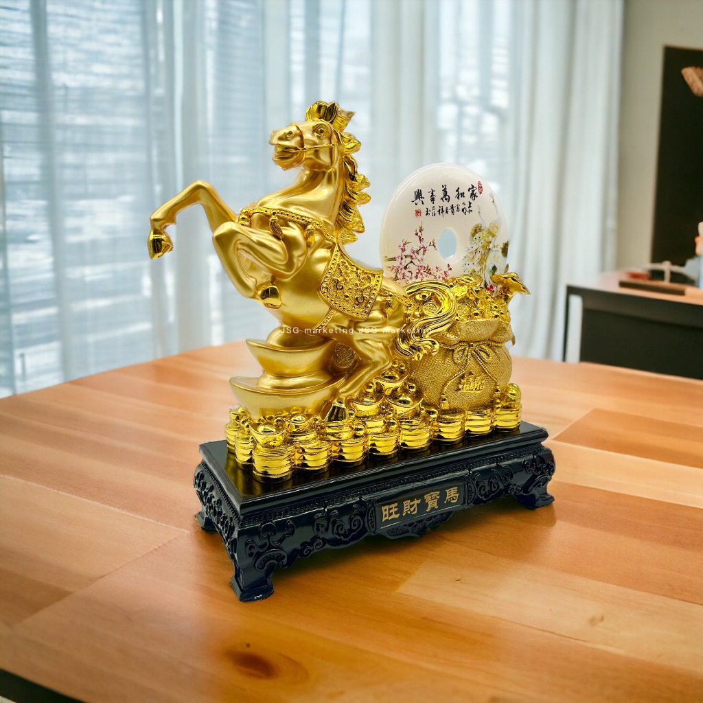 Feng Shui Horse With Coin Statue Resin For Success Home Office Prosperity Tabletop Decor Figurine568