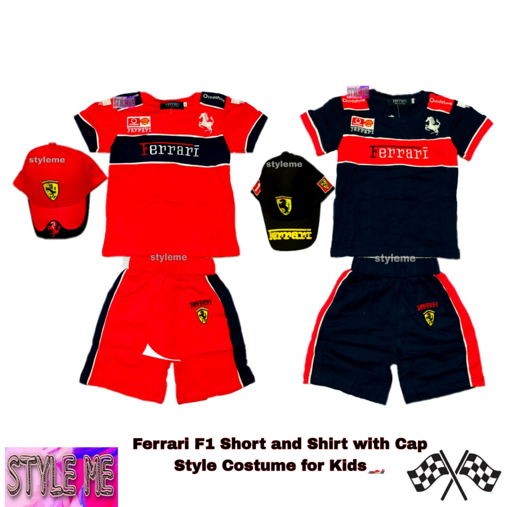 Ferrari F1 Jacket/ Short/ Overall Style with Cap Car Racing Costume Cosplay Role play For Kids