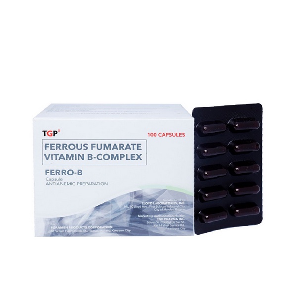 Ferro-B TGP 1 BOX Ferrous Fumarate +Vitamin B Complex 500mg 230mcg 2mg 3mcg (100 capsules)