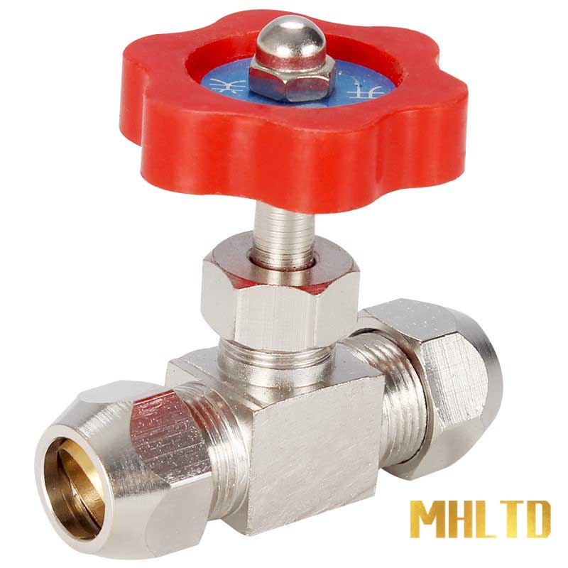 Ferrule Needle Valve Copper Tube Ball Valve Nickel Plated Gas Flow Control Throttle valve 6mm 8mm 10mm 12mm 1/8 `/4 Thread