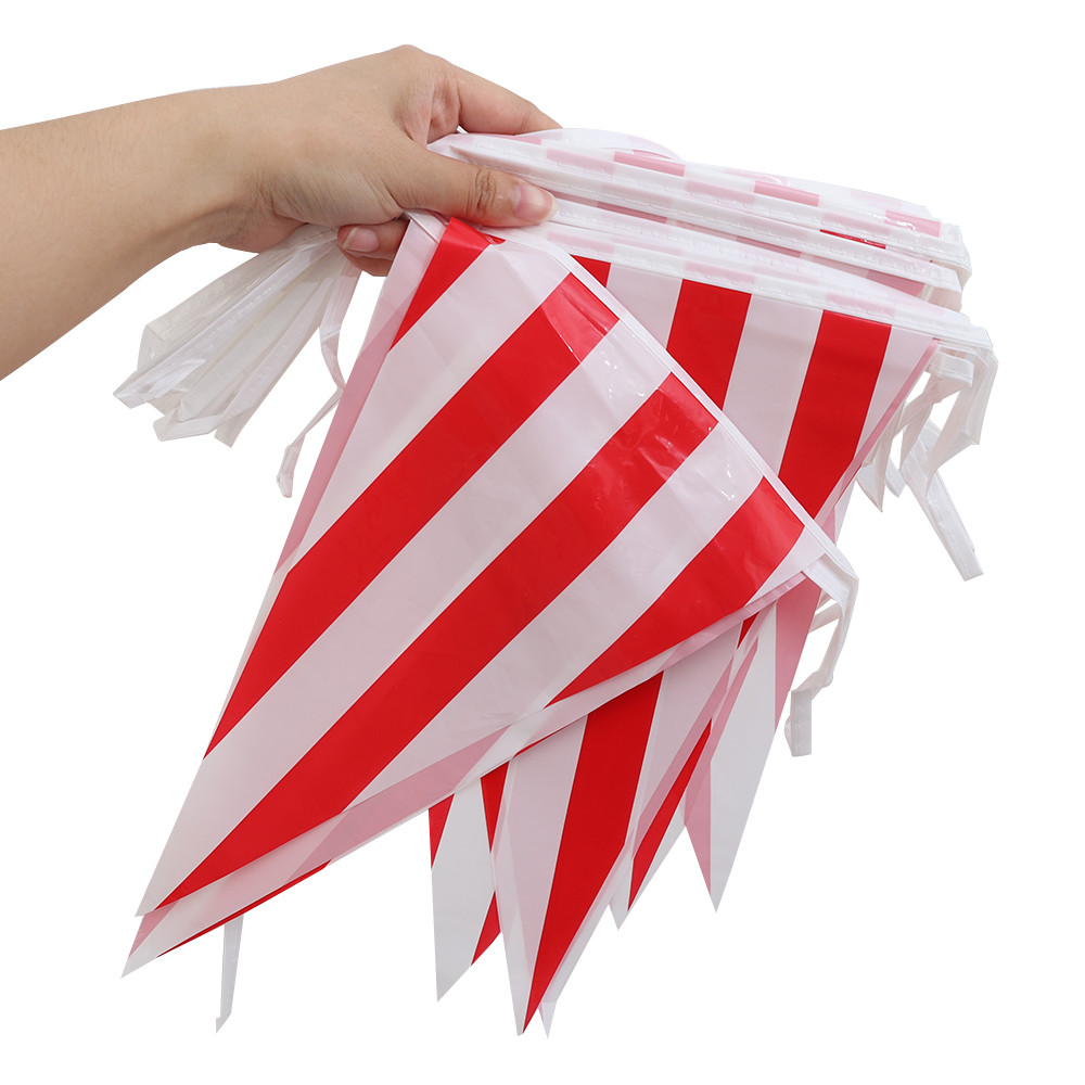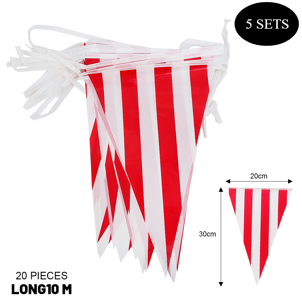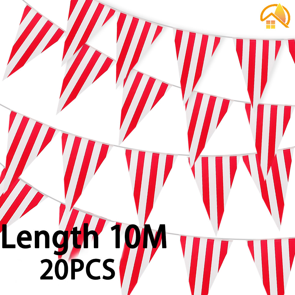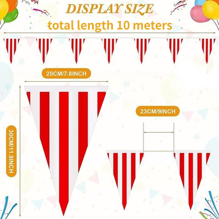 Festival Celebration Red White Striped Flags Banner Drop Ornament Carnival Circus Classic Triangular Flag Hanging Decor