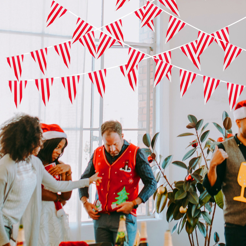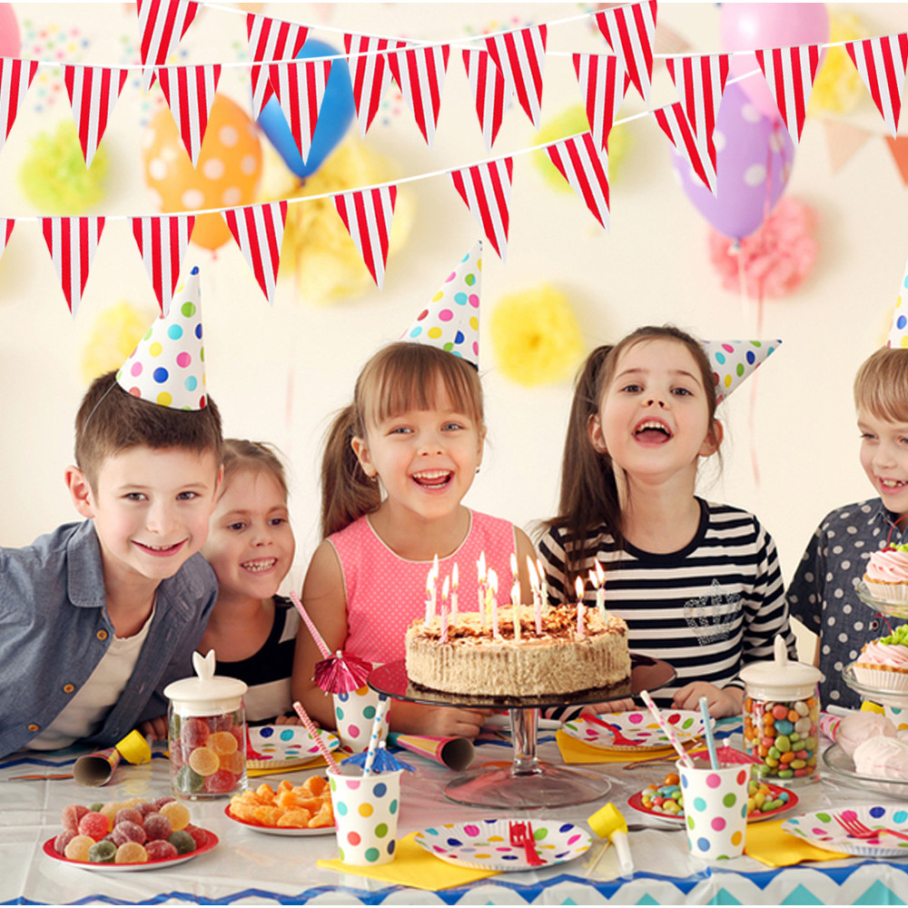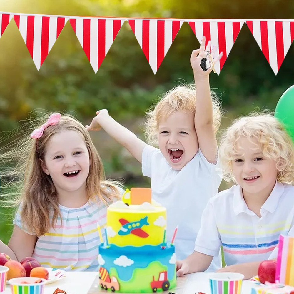 Festival Celebration Red White Striped Flags Banner Drop Ornament Carnival Circus Classic Triangular Flag Hanging Decor