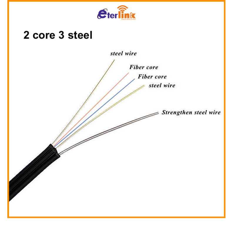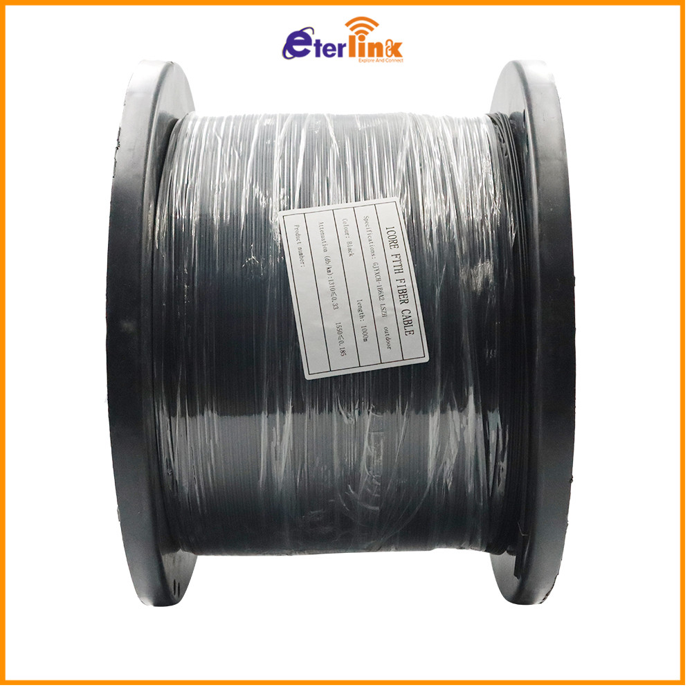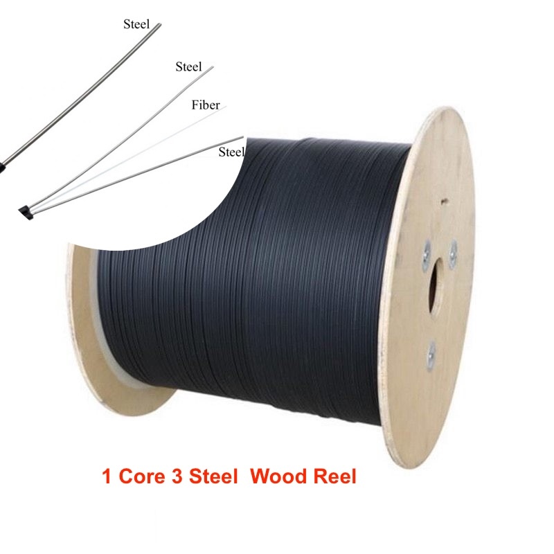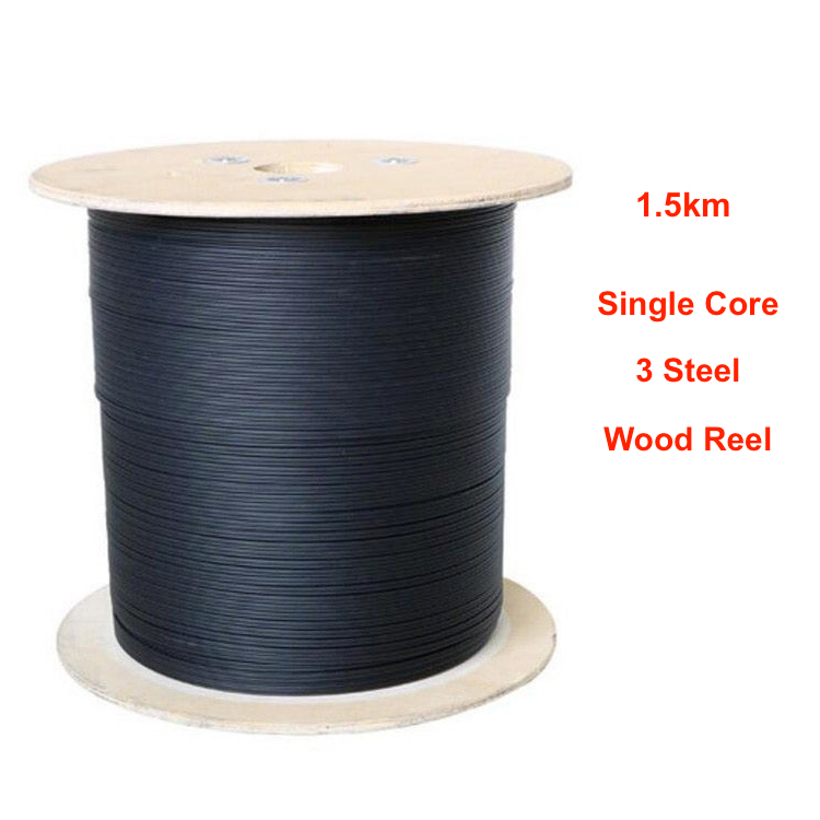 Fiber Optic Cable 1 Core / 2 Core 3 Steel 1km 1000m Pure Black Wire OutdoorFTTH Drop Cable Wire