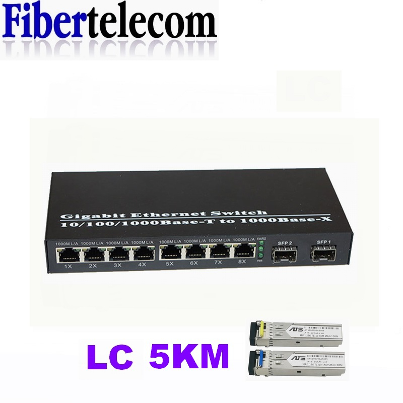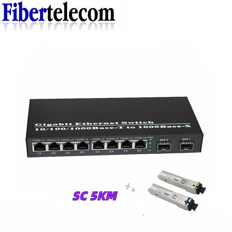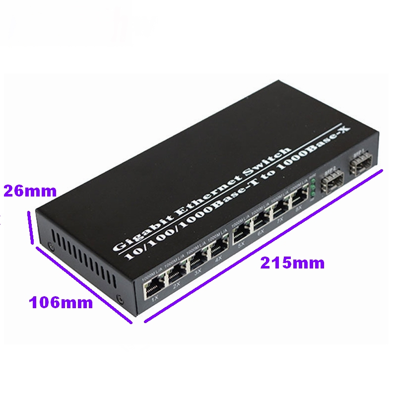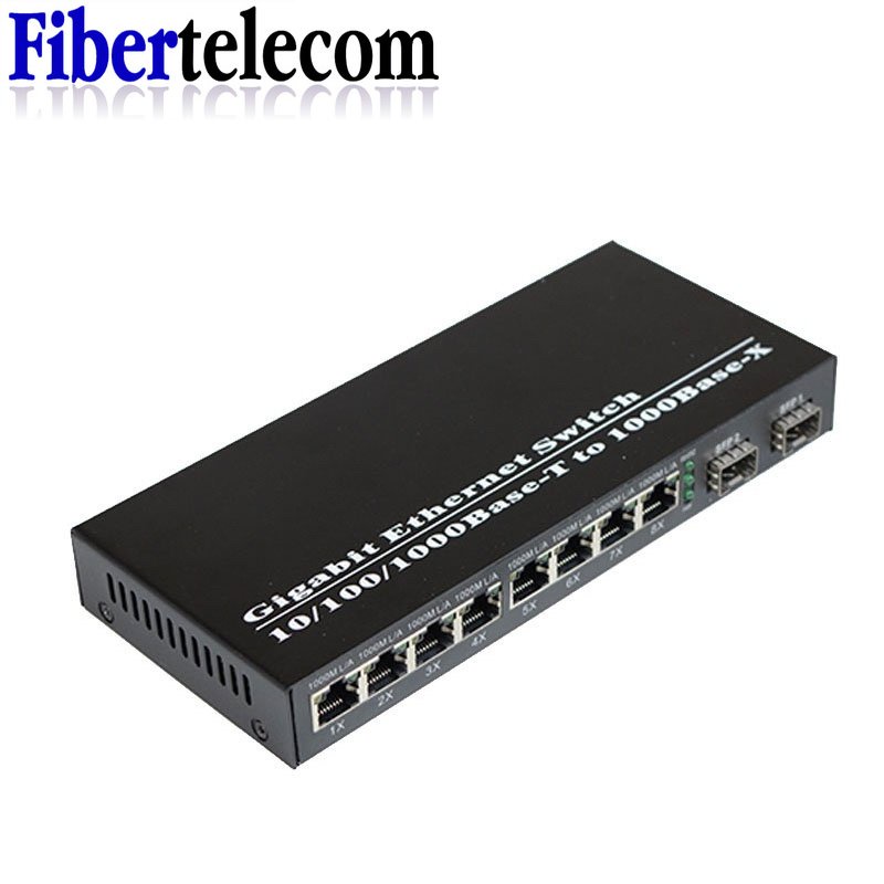 Fiber Optical Switch 8 RJ45 2 SFP Fiber Port UTP Media Converter Gigabit Ethernet Switch 10/100/1000M