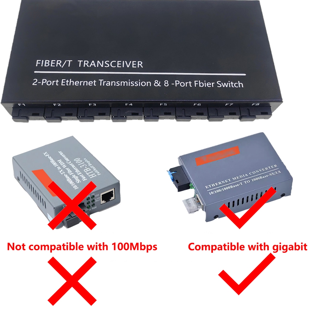 Fiber Optical Switch 8 SC 2 10/100M/1000M RJ45 Industrial Grade Gigabit Ethernet Switch media Converter