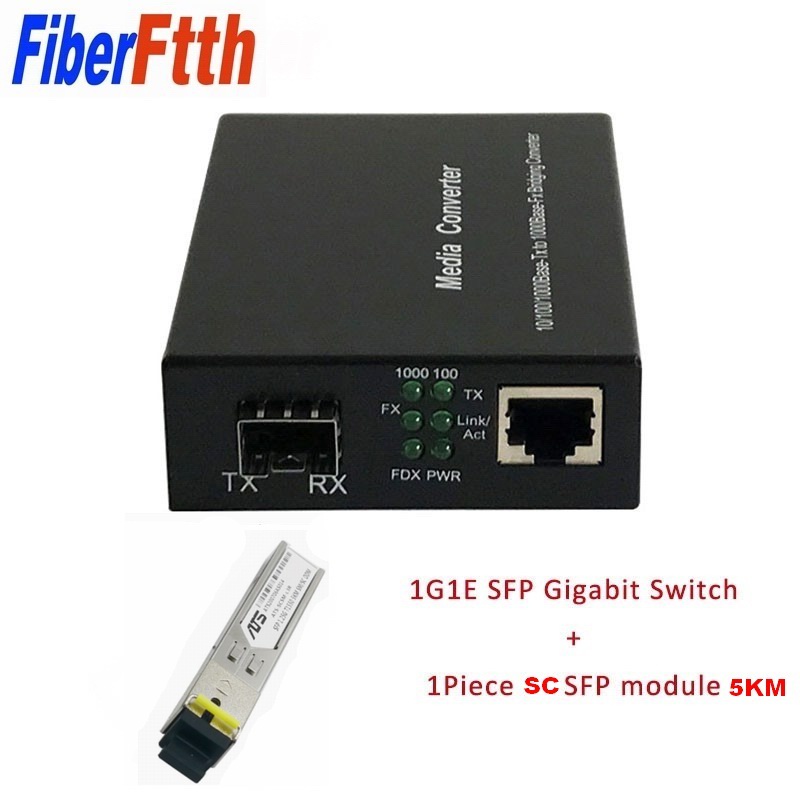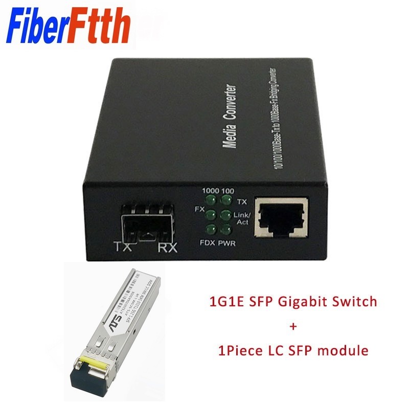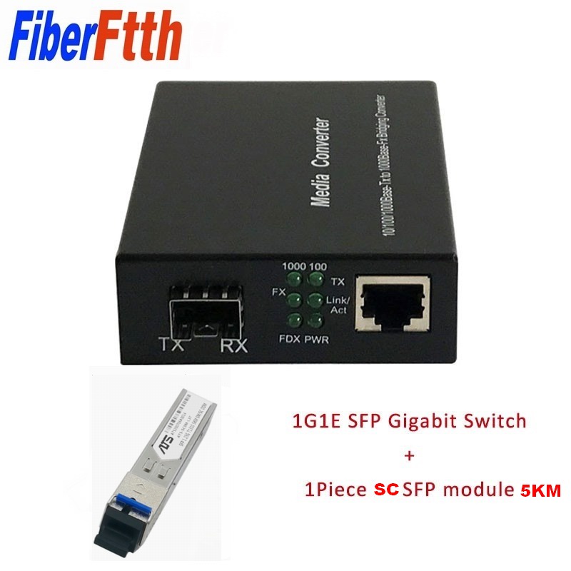 Fiber Optical media converter 1 port sfp to 1 rj45 gigabit optical fiber ethernet 10/100/1000M