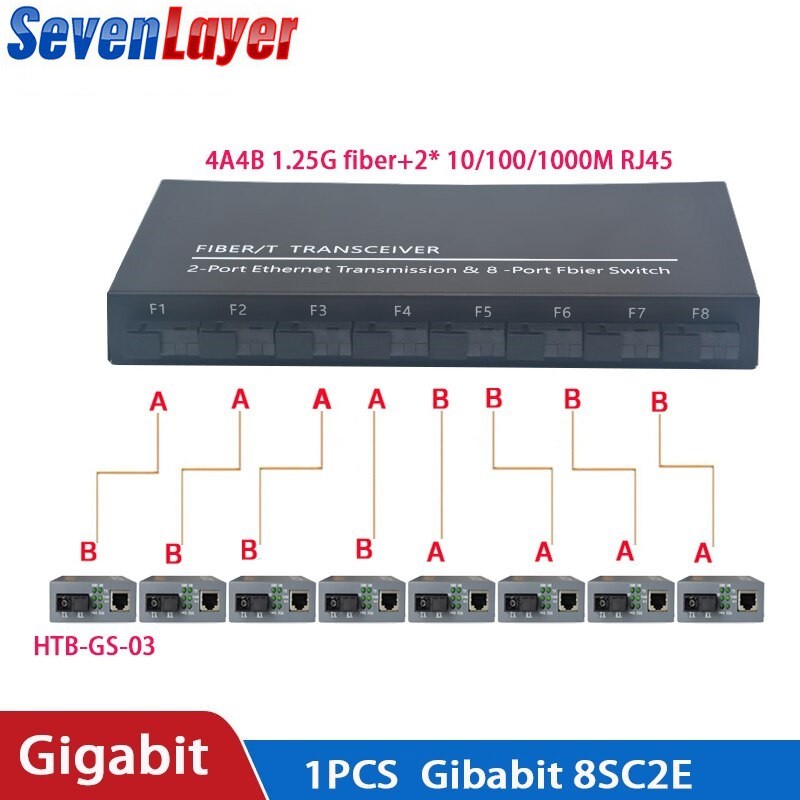Fiber Optical switch 8 SC 2 1000M RJ45 Industrial Grade Gigabit Ethernet media Converter