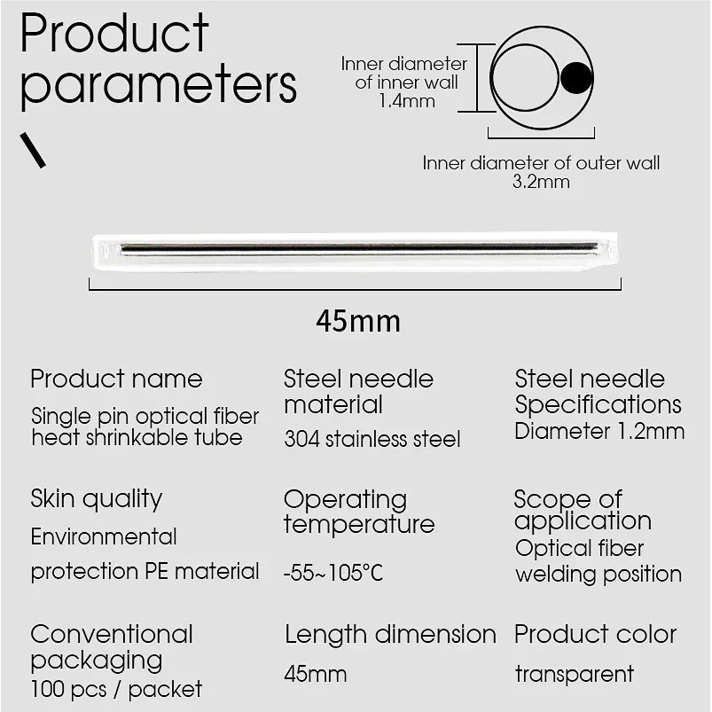 Fiber optic fusion spliced fiber outer sheath wire to fusion spliced tube,heat shrink tubing 60mm thick tube single needle/double needle bare fiber fusion protection tube
