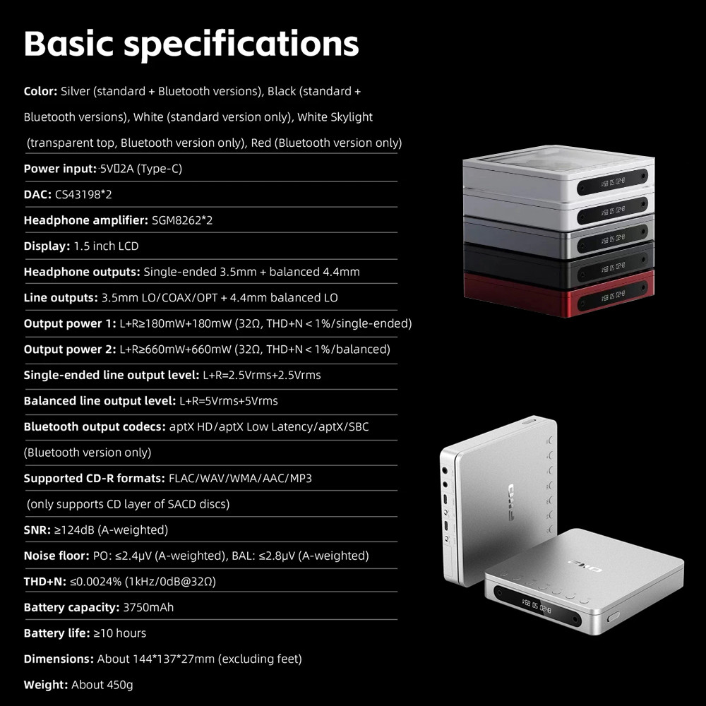 FiiO DM13 Multifunctional Portable Stereo CD Player with Long-Lasting Battery, Supports USB Ripping, Optical/coaxial/3.5mm/4.4mm