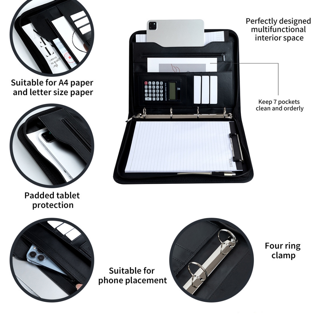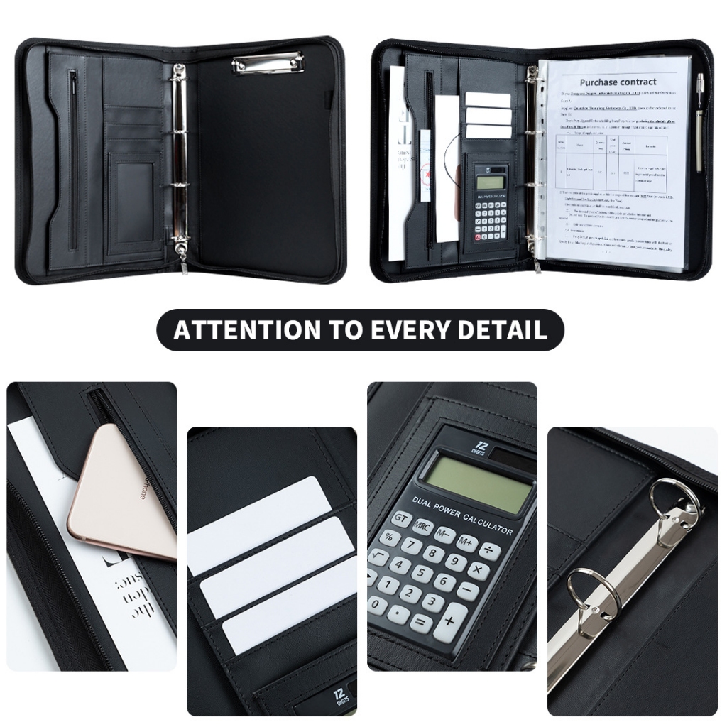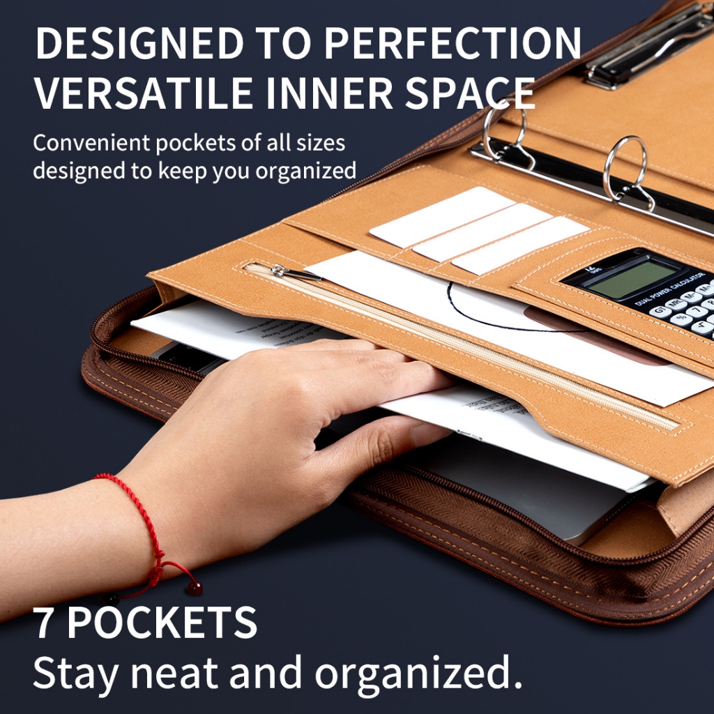 File Folder Portable Professional Business Portfolio Folder A4 Leather Zippered Document Organizer