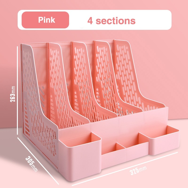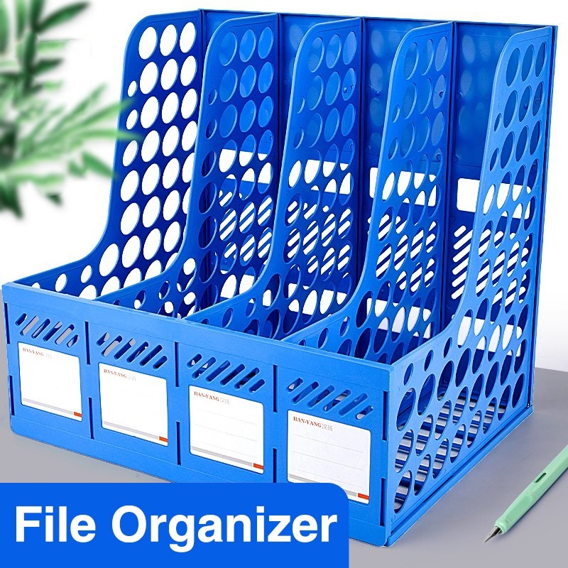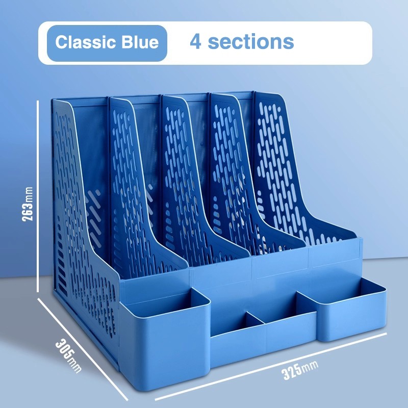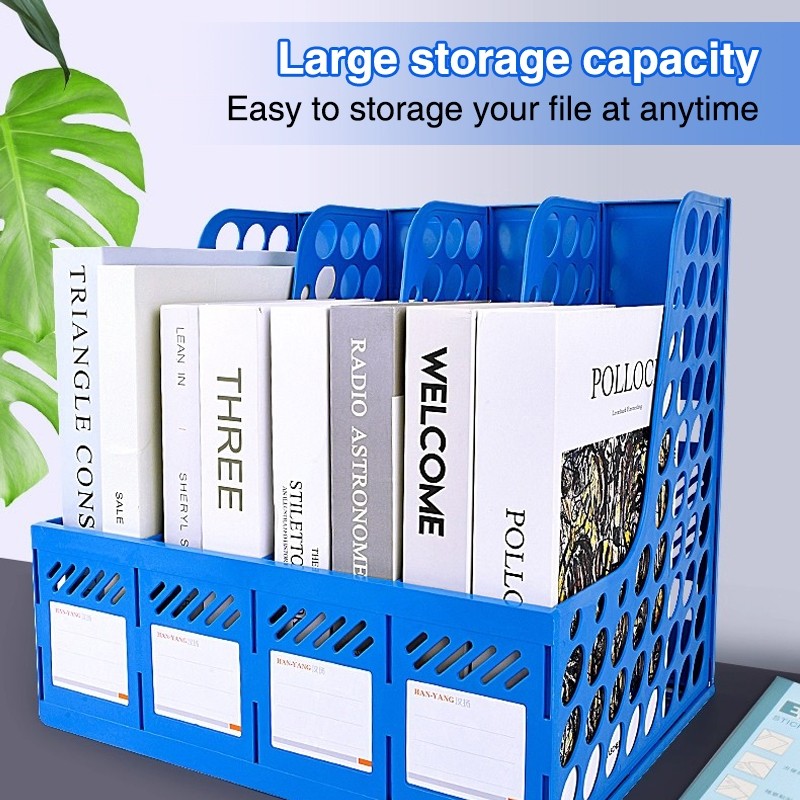 File Holder 4 Sections Desk File Organizer Plastic Magazine Plastic Vertical Document Folder Storage