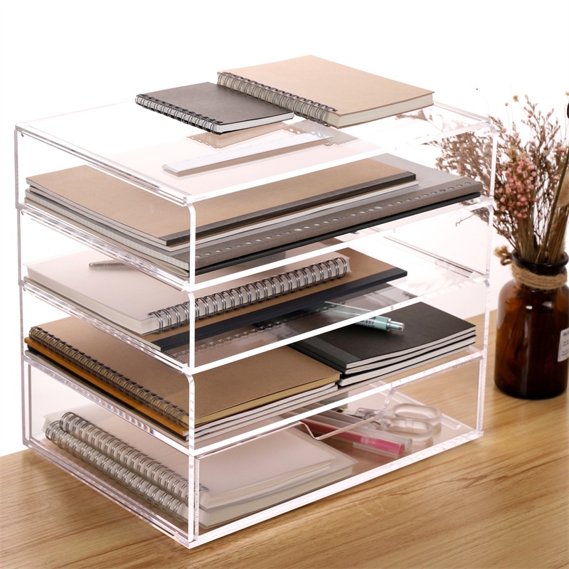 File Tray With Drawer Acrylic Inbox + Drawer Organizer, Color Tray Set Clear,305 x 225 x 145mm rack file office