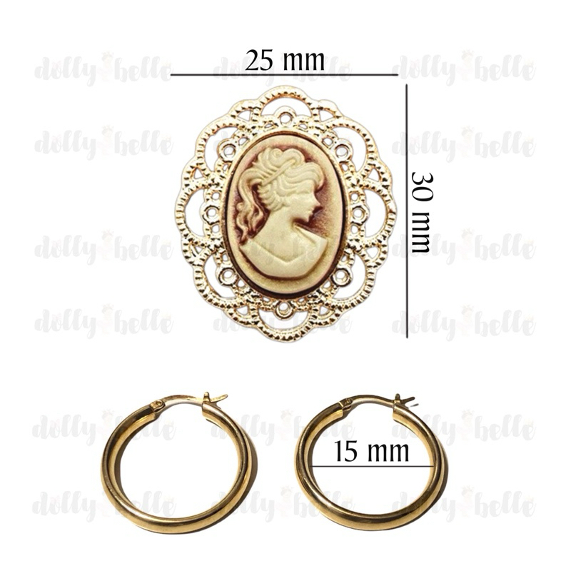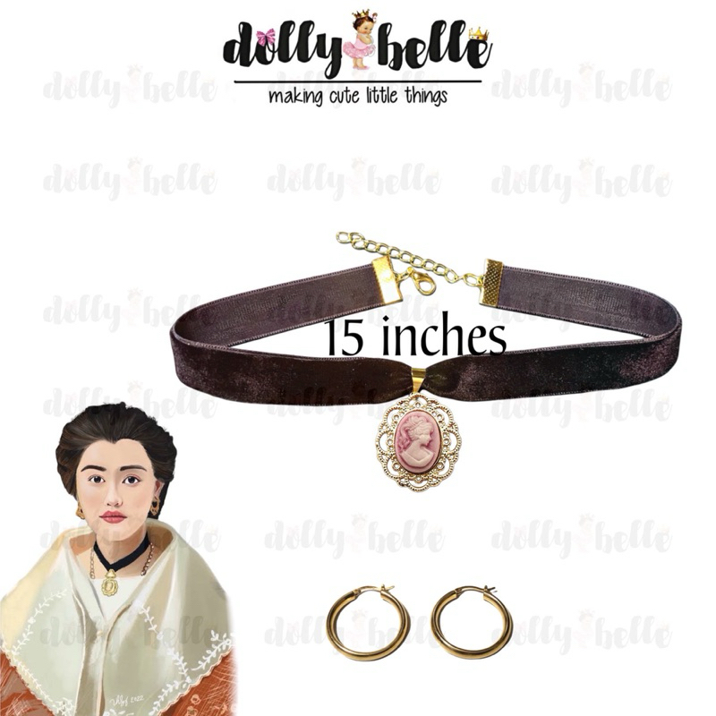Filipiniana Maria Clara Traditional Oath taking: Victorian Cameo Pendant choker necklace + Earrings