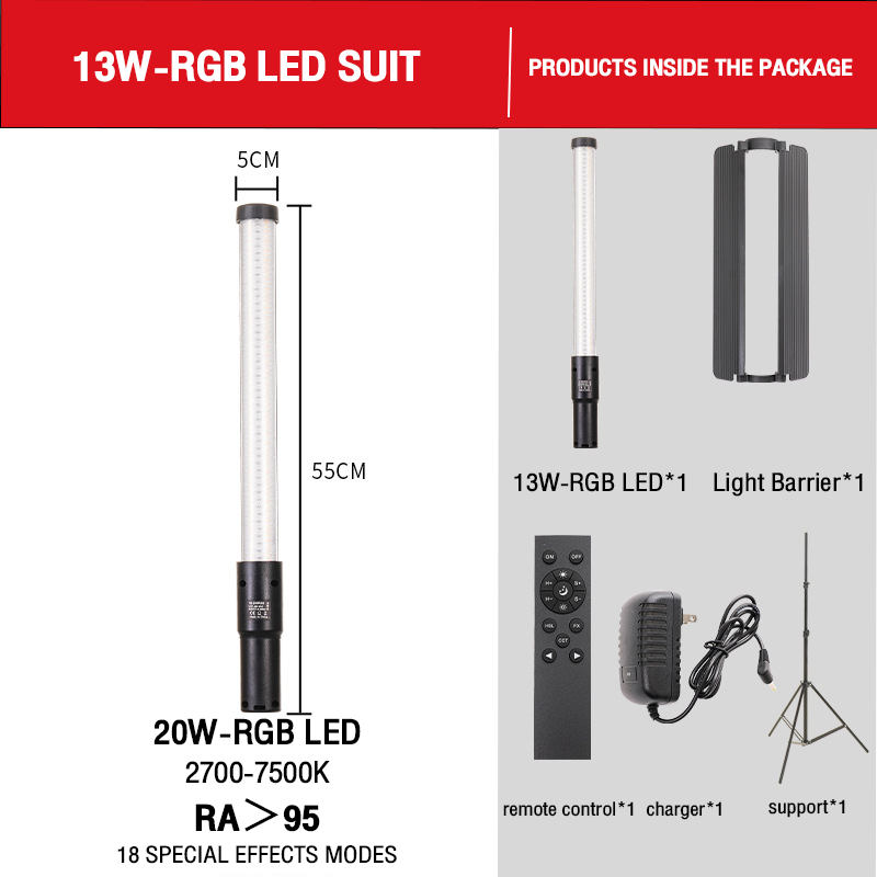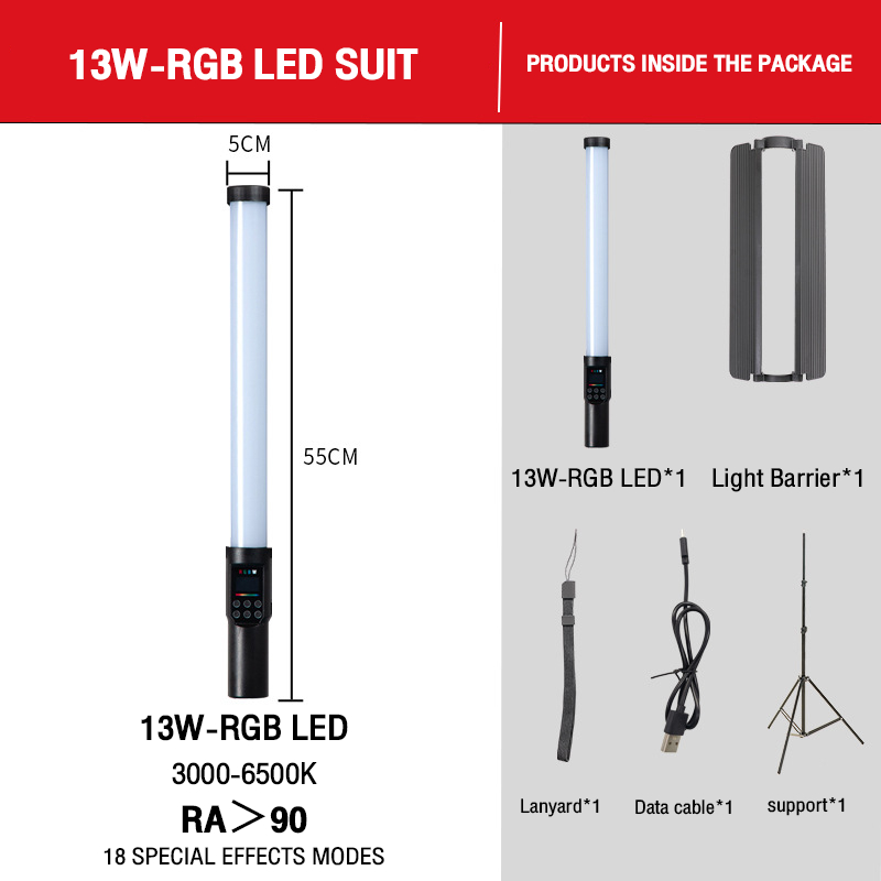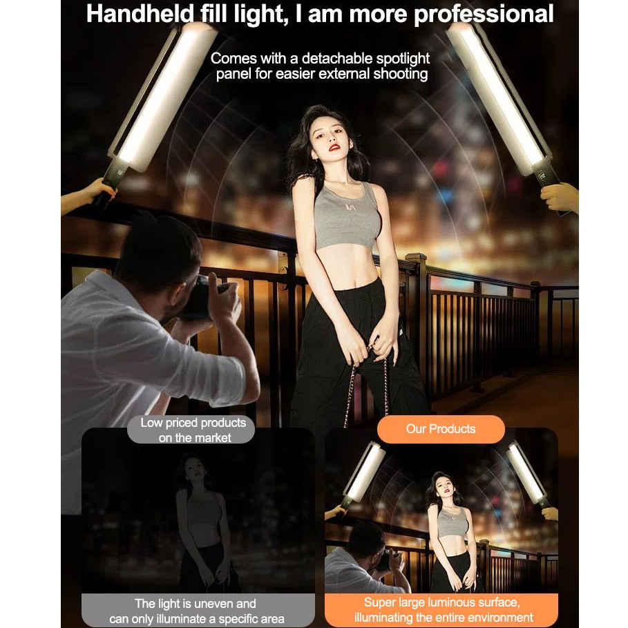 Fill Light LED Stick Light Professional RGB Fill Light Stick Handheld Fill Light Portrait Outdoor Shooting Mini Portable Photo Video Live Lighting Soft Light Atmosphere