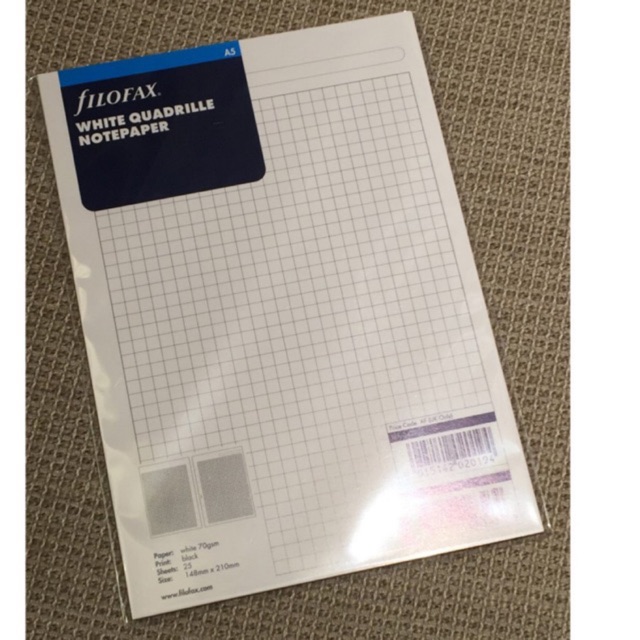 Filofax Planner Inserts for Size A5 - Business Card, Credit Card Holder, White Quadrille Notepaper