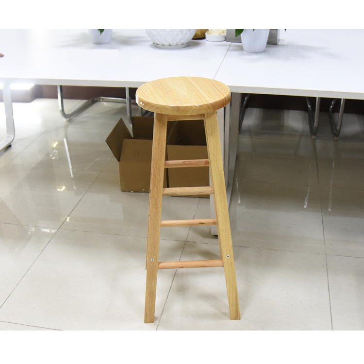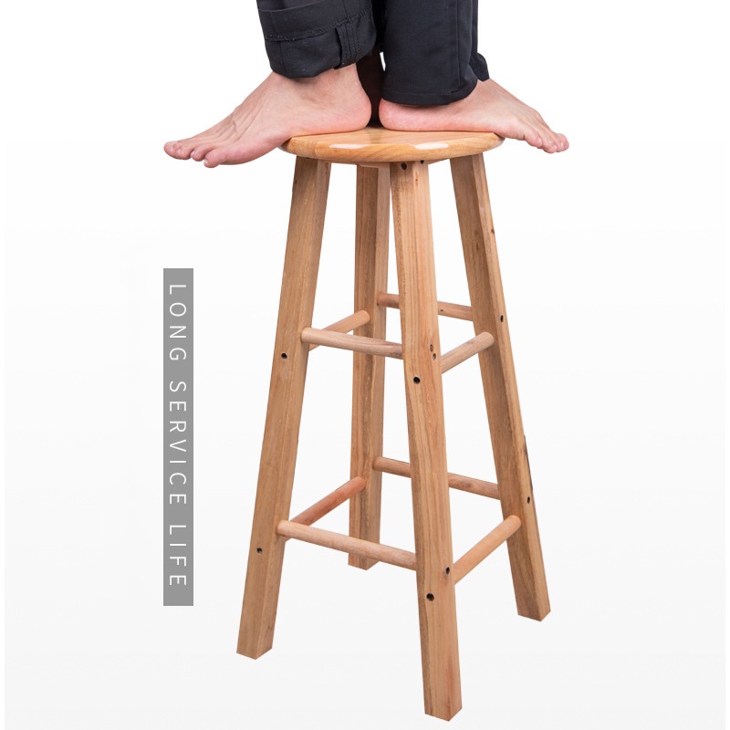 Finelife Solid Wood Milk Tea Stool Household High Chair Nordic Log Stool Solid Wood Bar Stool