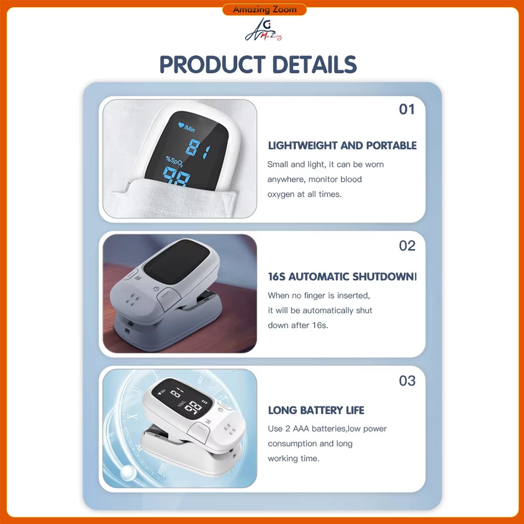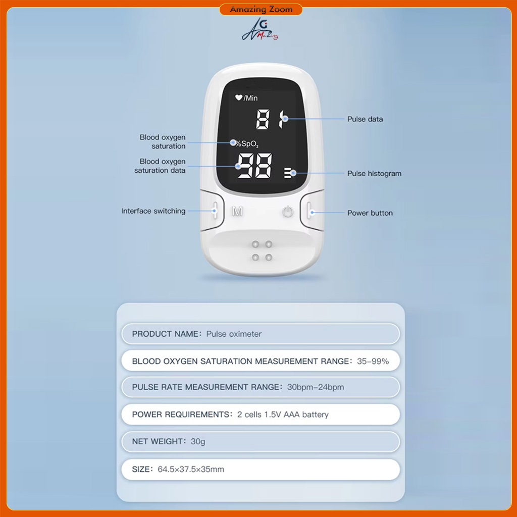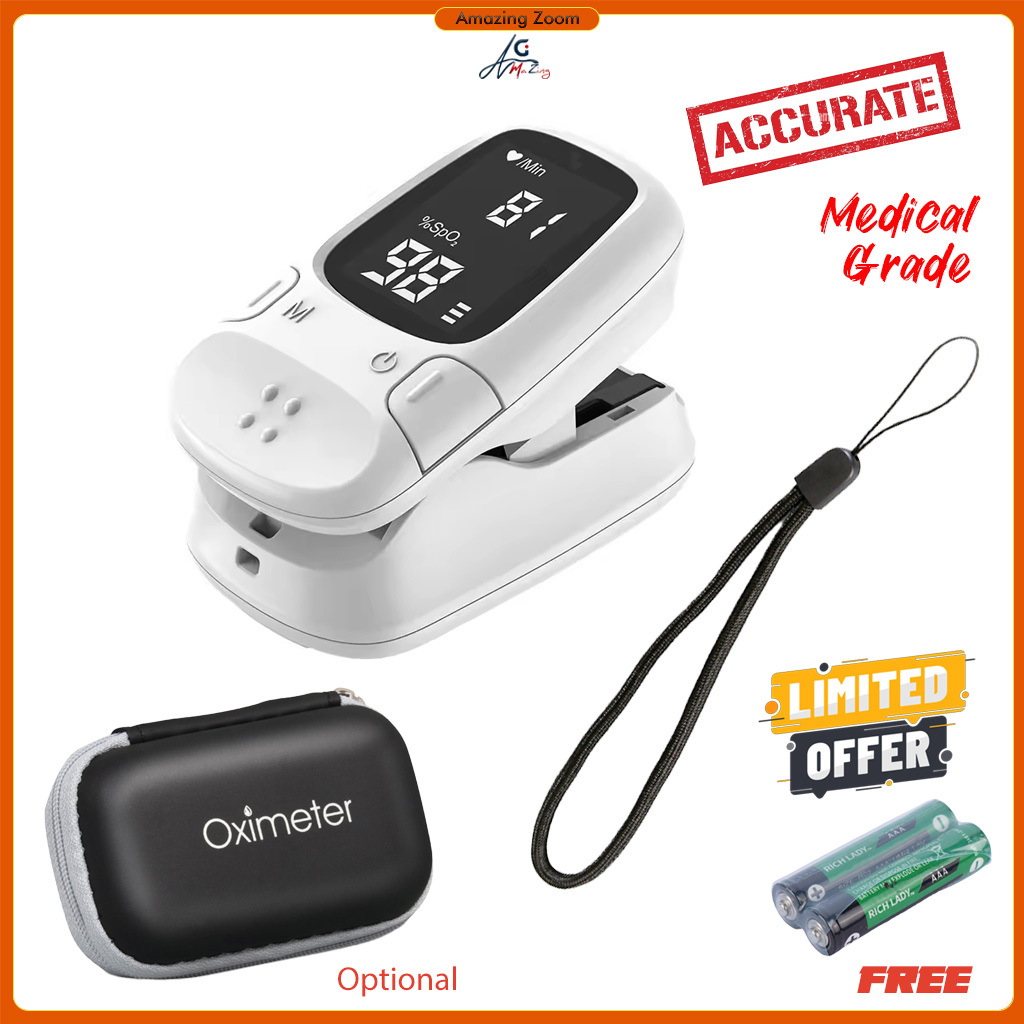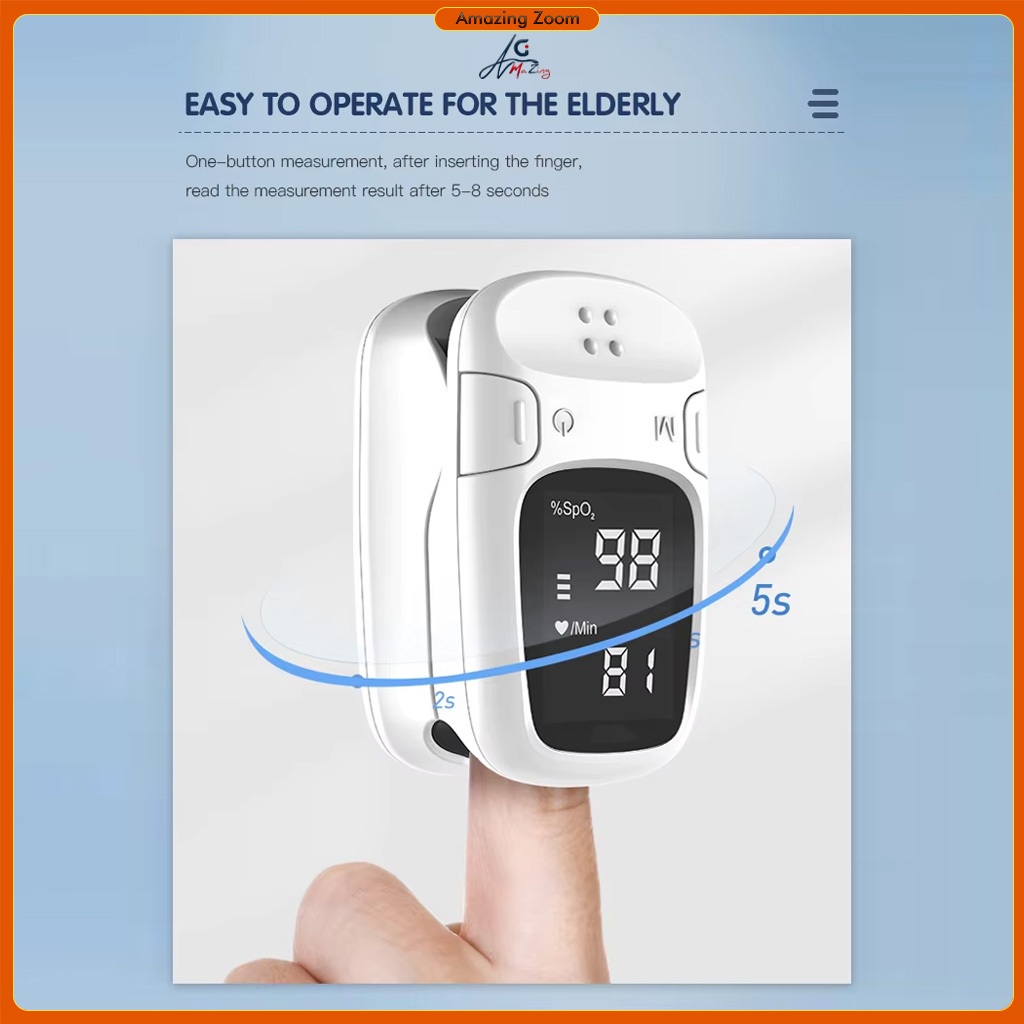 Finger Pulse Oximeter SpO2 Blood Oxygen Saturation Monitor with Rate Measurements Meter Medical