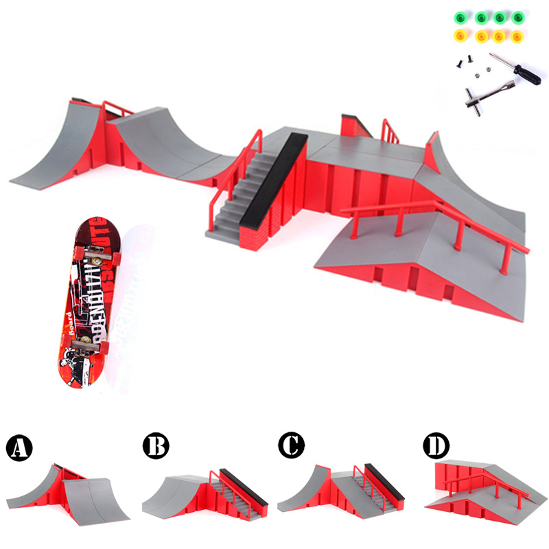 Mini Fingerboard Skate Park Set Finger Skateboard Ramp Deck Scene Props DIY Skate Training Track Toy