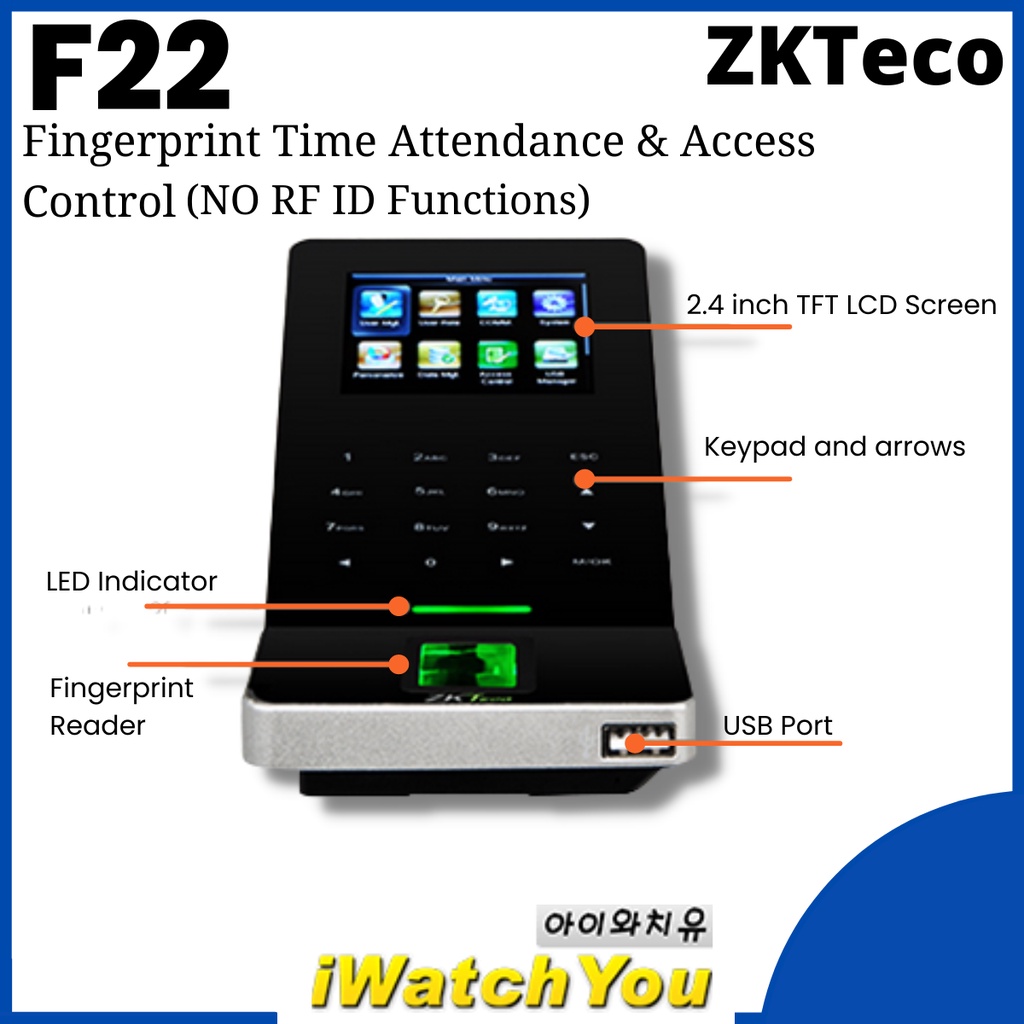 Fingerprint, Keypad, Access Control Terminal ZKTECO F22 - Easy Staff Information Registration