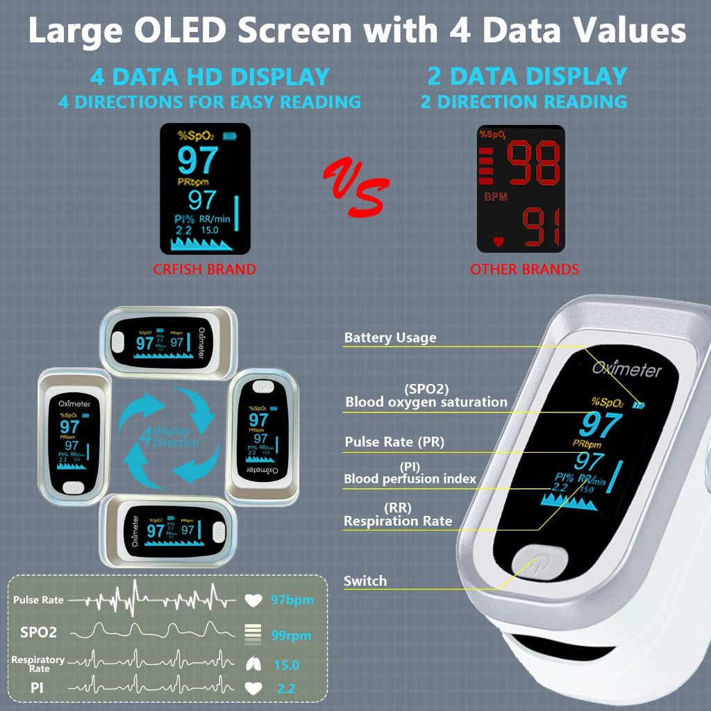 Fingertip Pulse Oximeter, (SpO2)Blood Oxygen Saturation Monitor with Pulse Rate Measure With RR