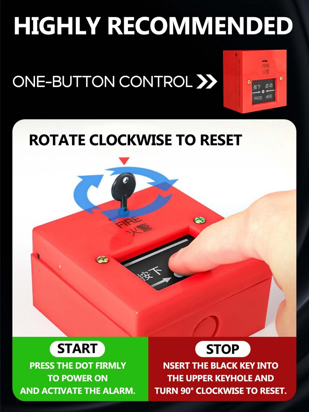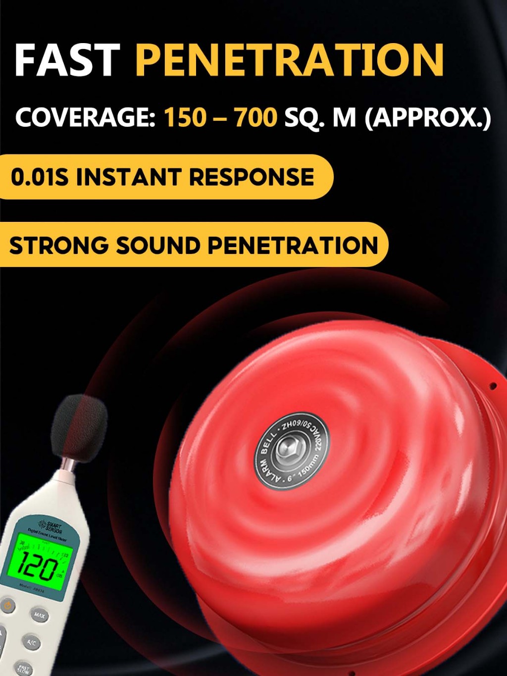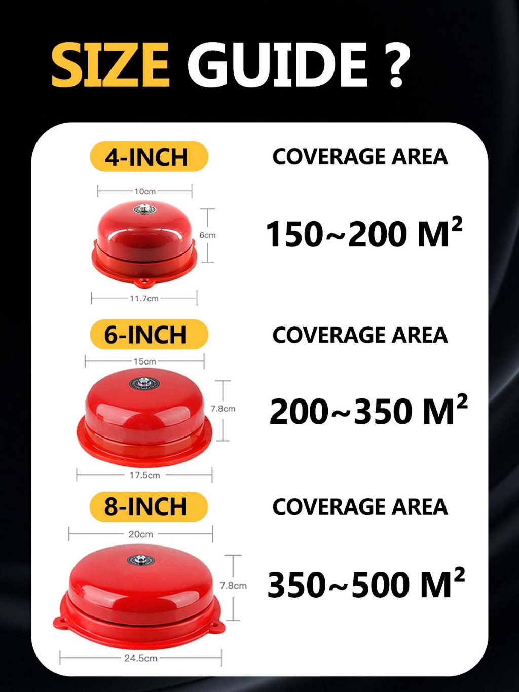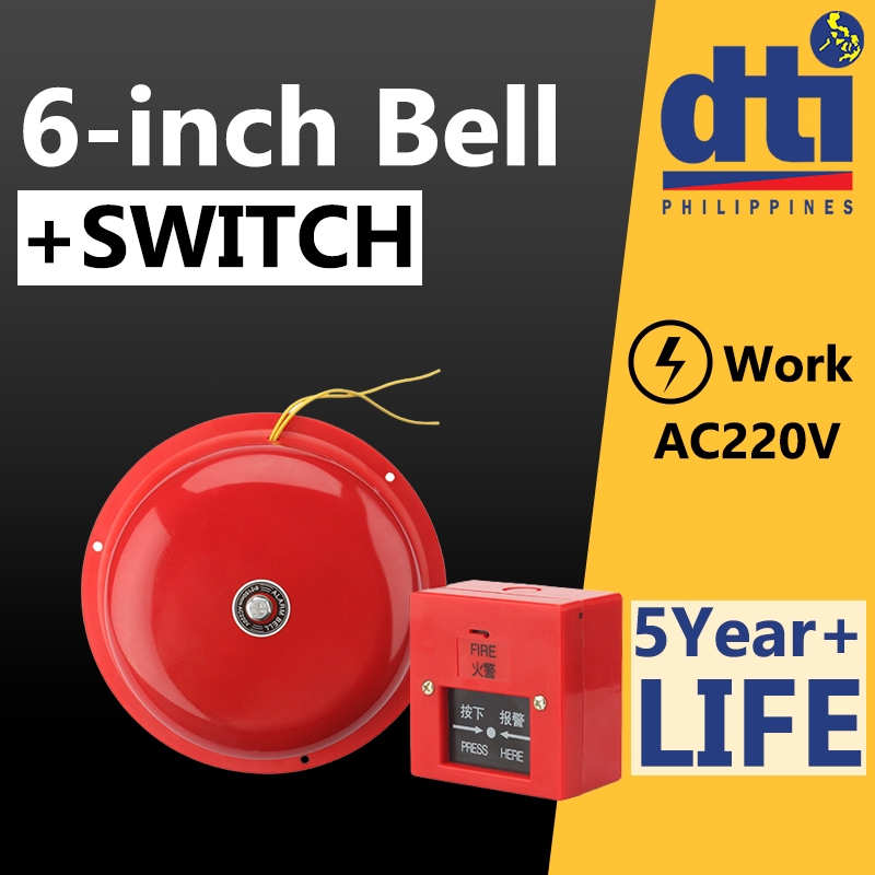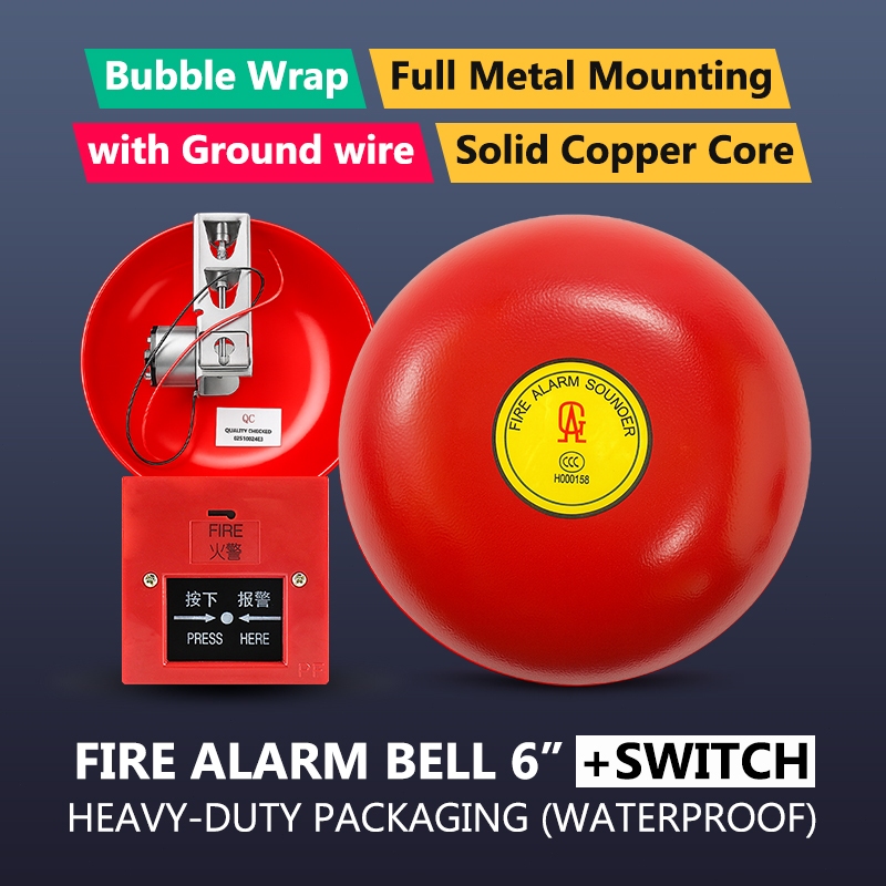 220V Fire Alarm Bell 4/6/8/10/12" with Manual Switch Loud Fire Fighting Alarm for Home Office Mall