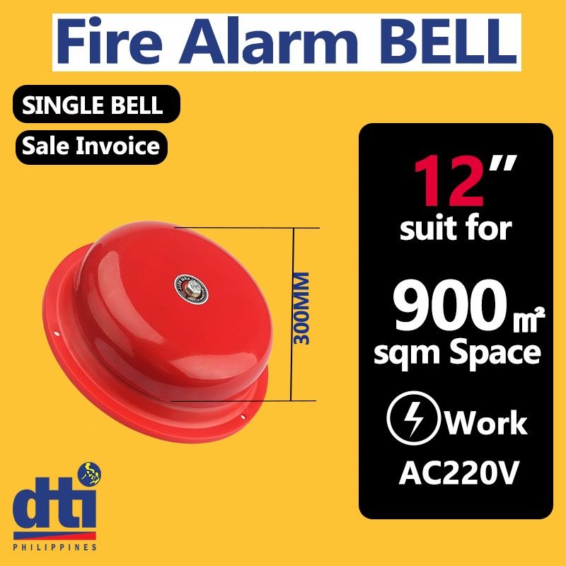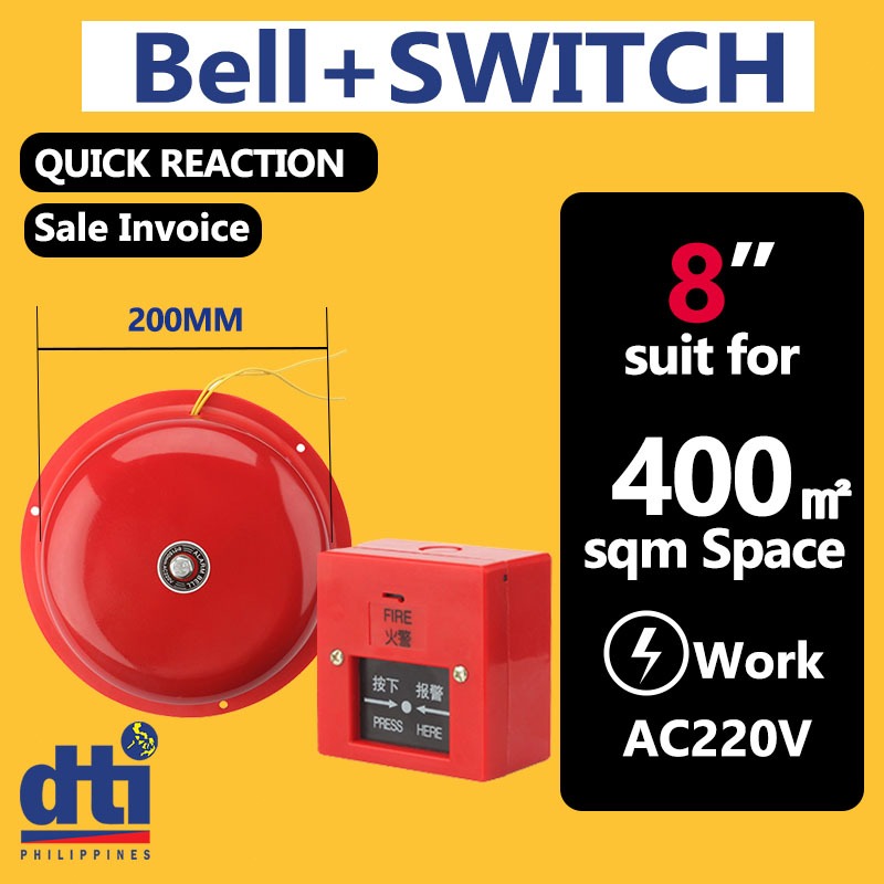 220V Fire Alarm Bell 4/6/8/10/12" with Manual Switch Loud Fire Fighting Alarm for Home Office Mall