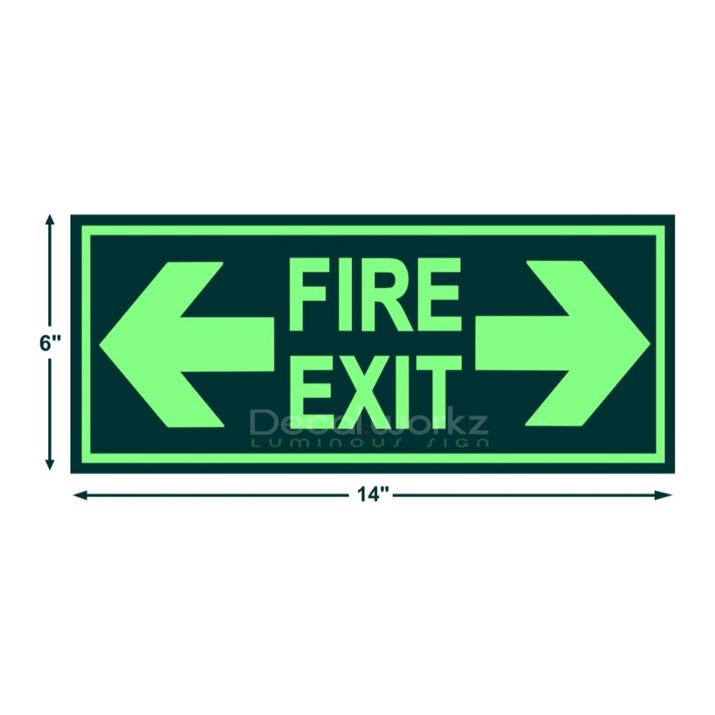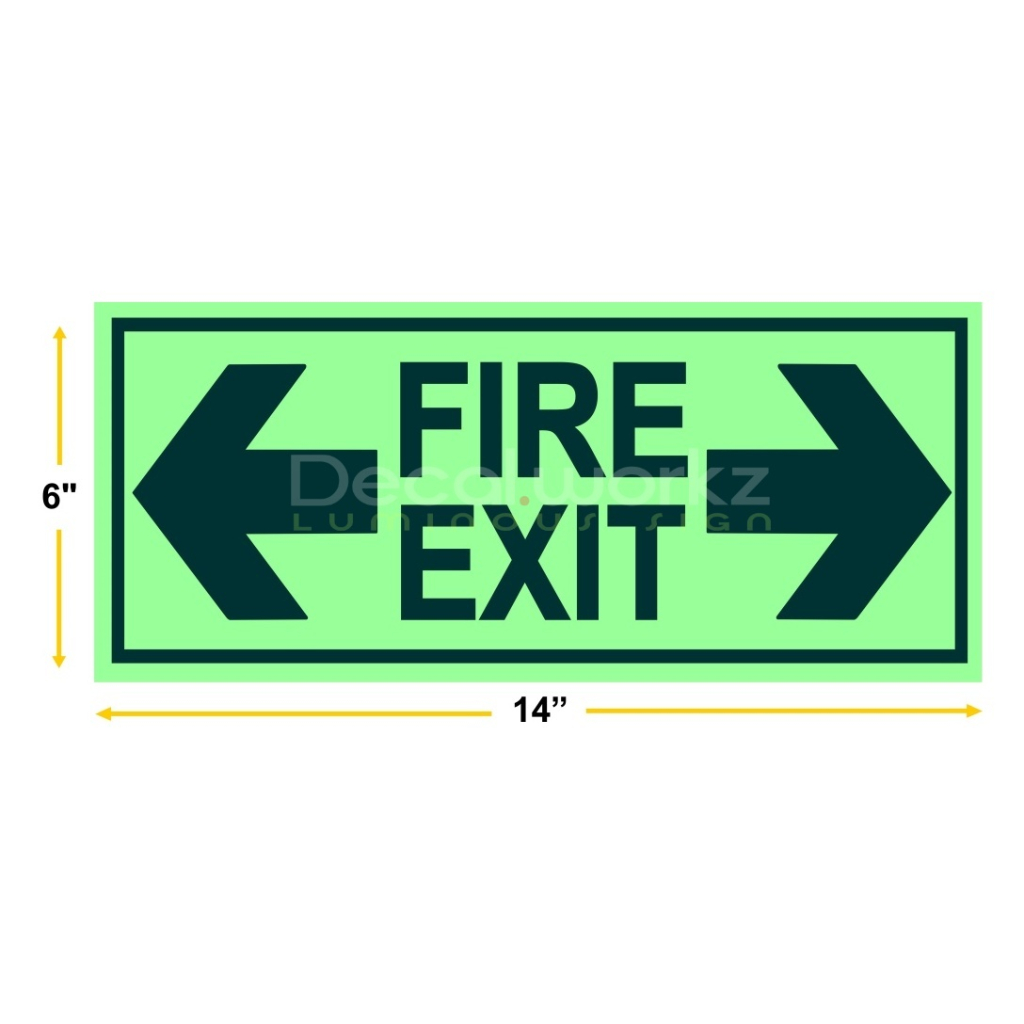 Fire Exit Sign Dual Arrow Glow in the Dark Cut Out Luminous Sticker in Sintra