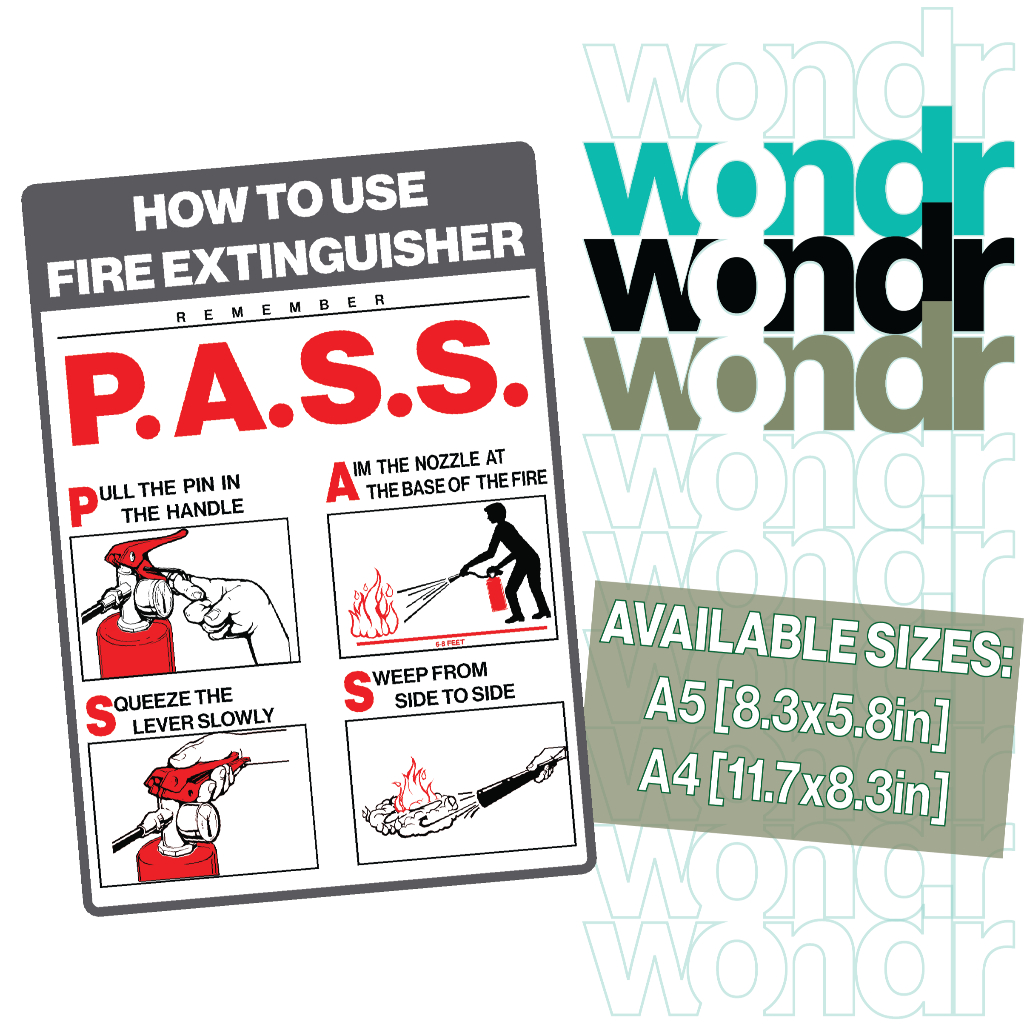 Fire Extinguisher Instructions Sign PASS Safety Signages for Household Company And Business Use