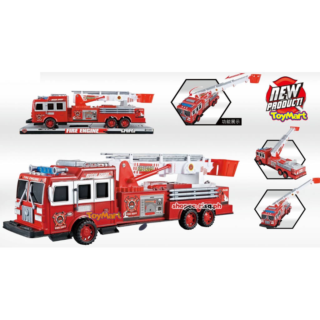 Fire Ladder Rescue Truck Simulation Red Fire Rescue Truck Toy w/ Up & Down Ladder Fire Car Model