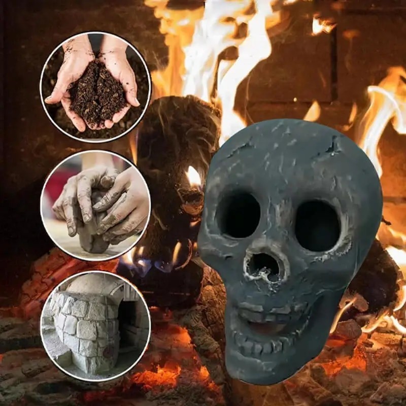 Fire Pit Human Skull Realistic Fireproof Firepit Bonfire Campfire Fireplace Ceramic Clay Craft Ornam