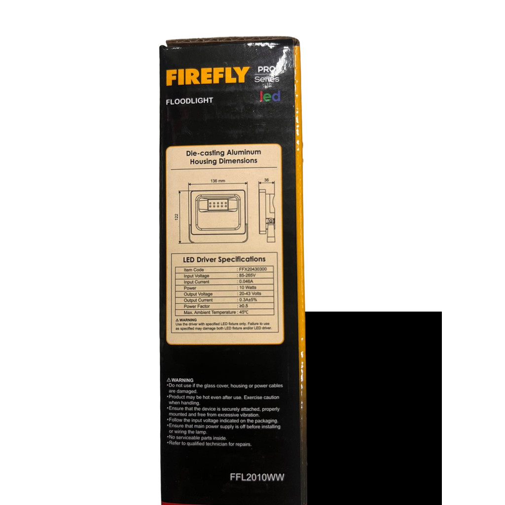 Firefly 10W LED Flood Light 220V Warm White 3000K FFL2010WW