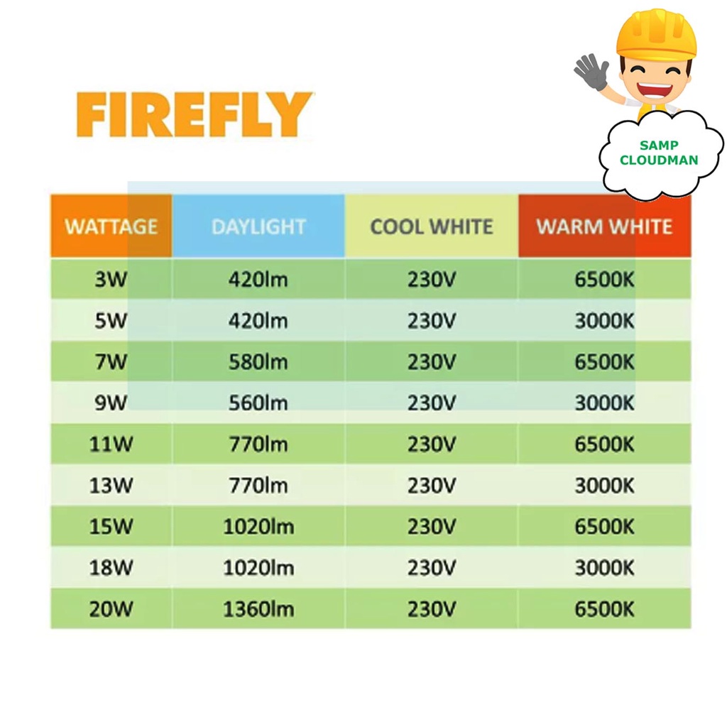 Firefly Basic Series LED Bulbs Daylight 5W 7W 9W 11w 13w 15w 18w Daylight 6500k E27 Base Per PIECE