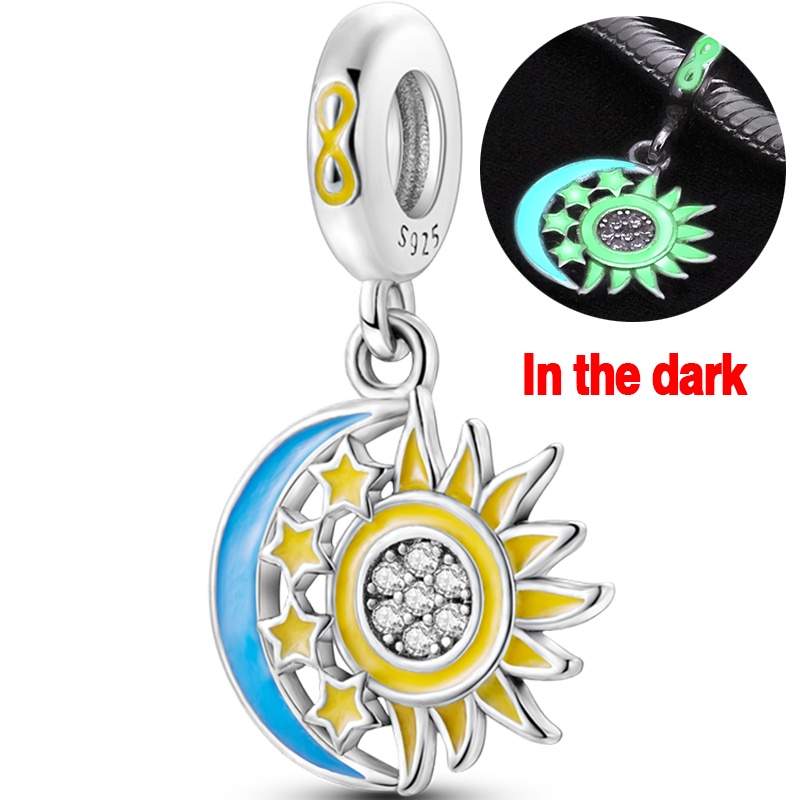 Firefly Glow in the dark Series Charms 925 Silver Sun Moon Star Charm Beads Fit Original Pandora Bracelet for Women DIY Making Gift